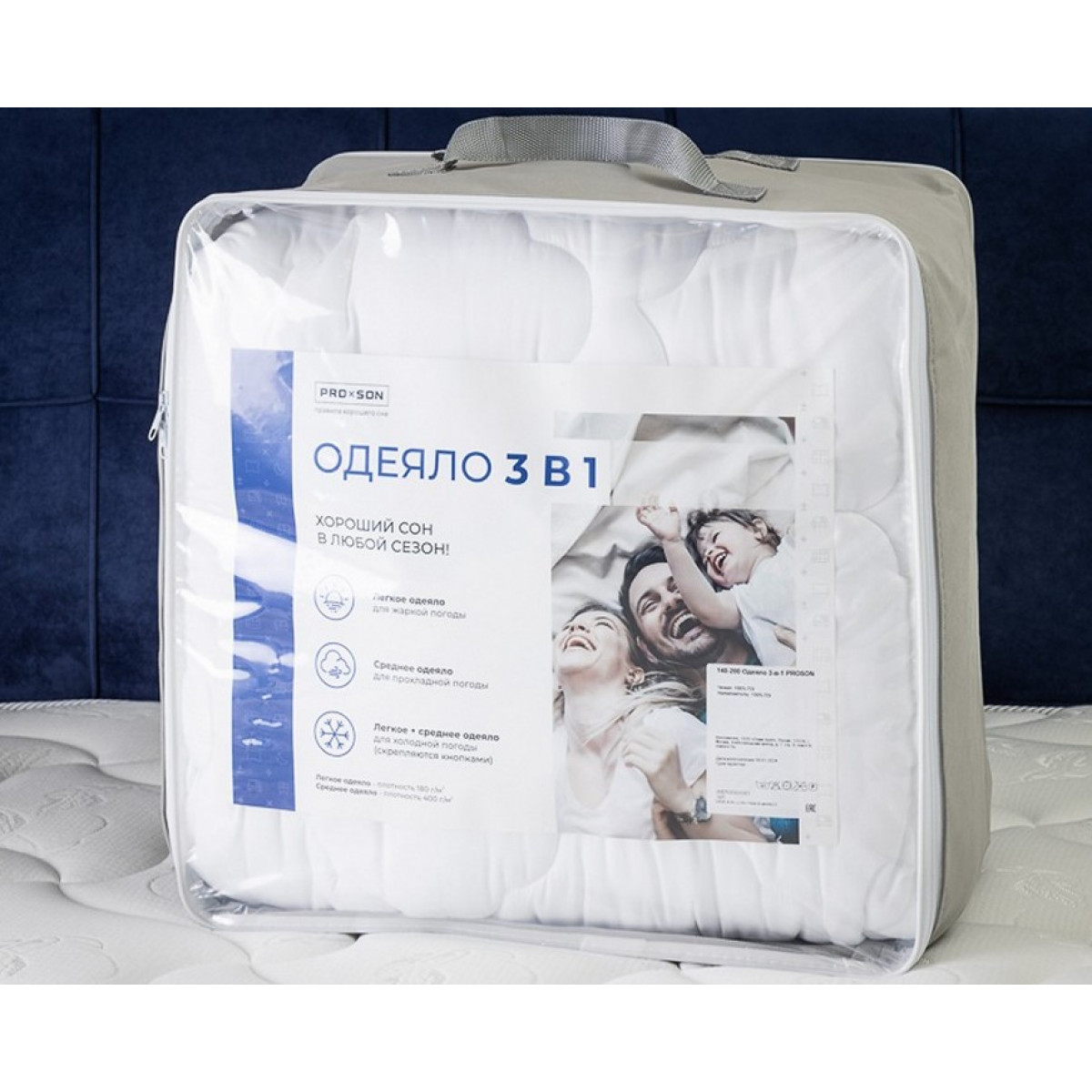 Два одеяла разной плотности соединяются с помощью кнопок, чтобы сделать ваш сон комфортным при любой температуре в комнате.