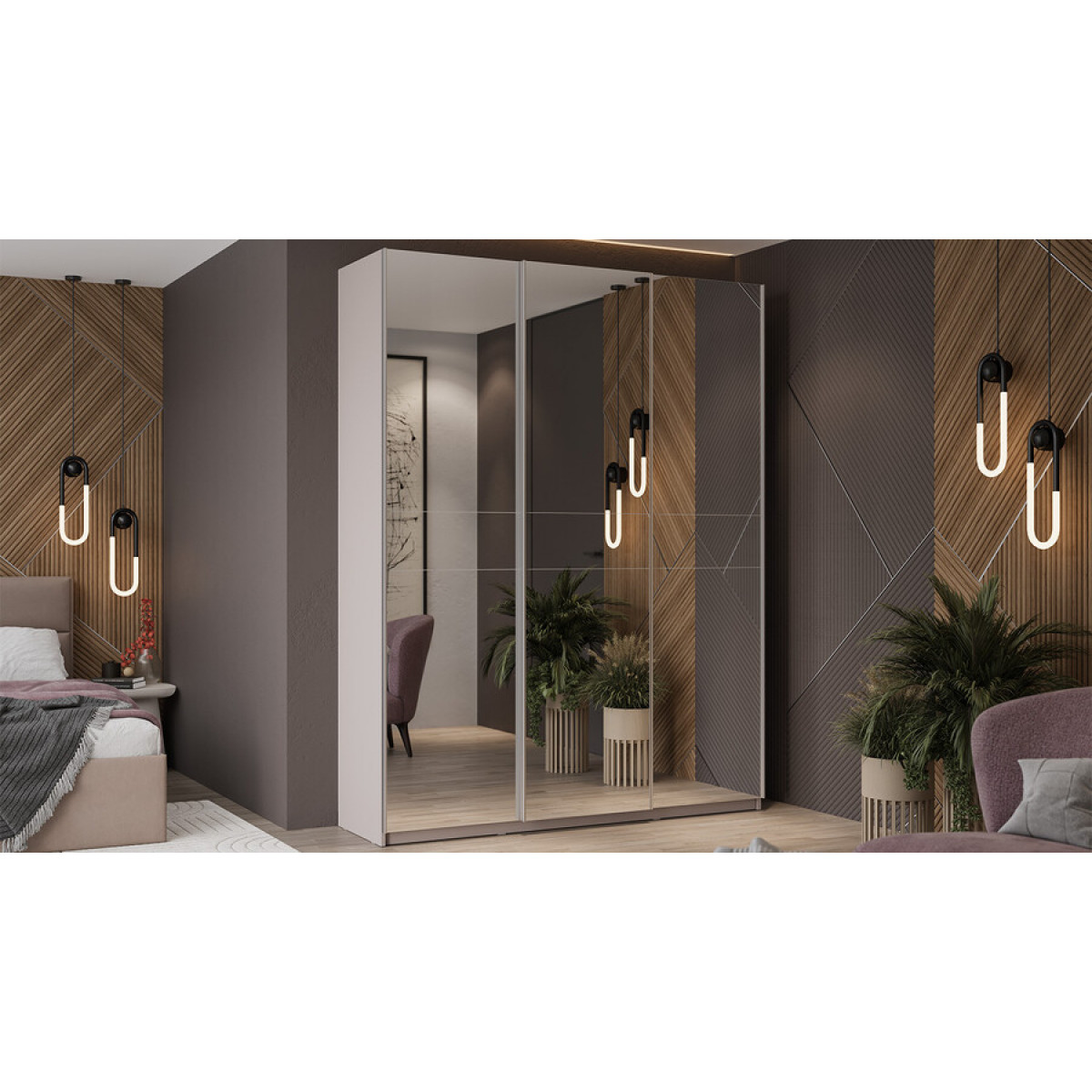 Шкаф-купе с 3 зеркальными дверями «Оскар» Ручка серебро, Кашемир