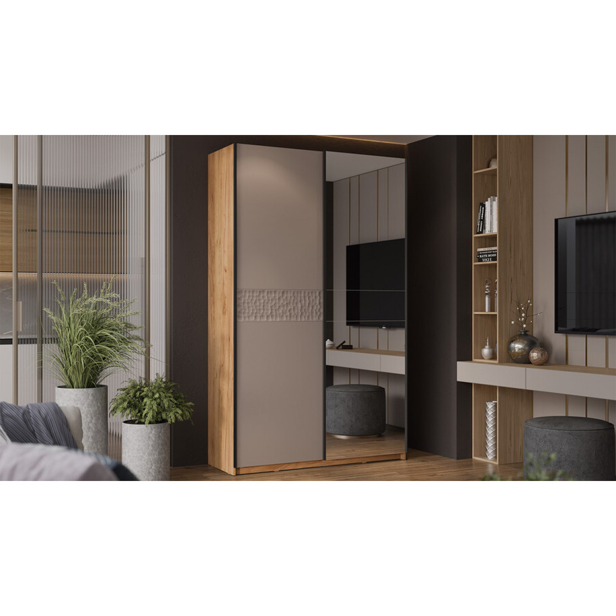 Шкаф-купе с 1 глухой и 1 зеркальной дверями «Оскар Скания» Ручка черная, Дуб Крафт золотой, Кашемир, Кашемир сатин