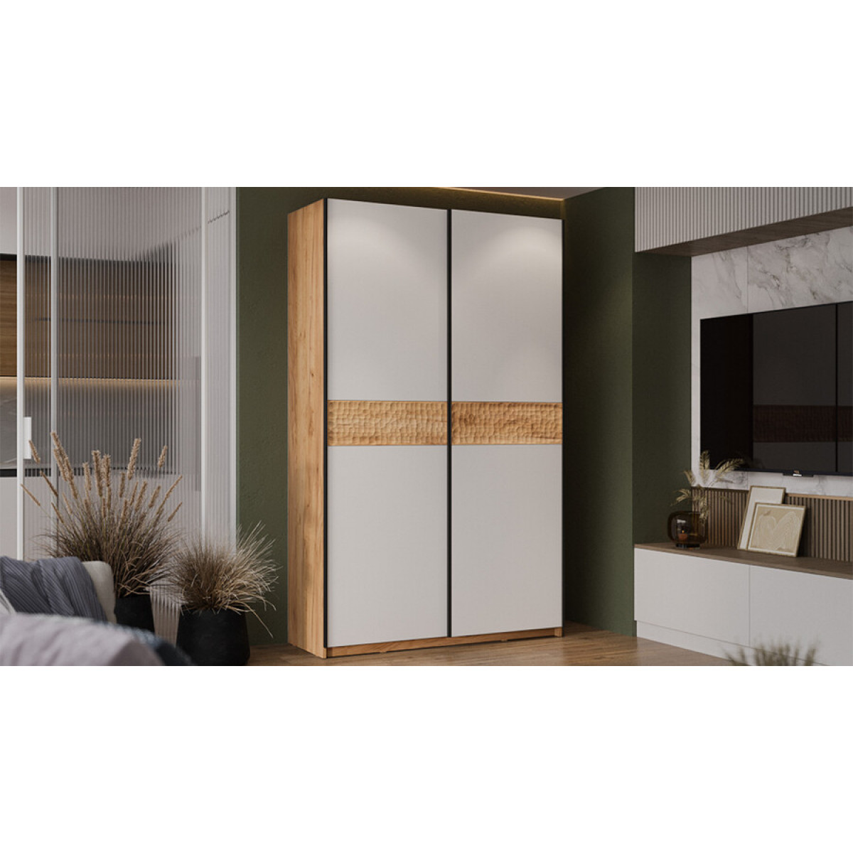 Шкаф-купе с 2 глухими дверями «Оскар Скания» Ручка черная, Дуб Крафт золотой, Белый снег, Дуб тортугга