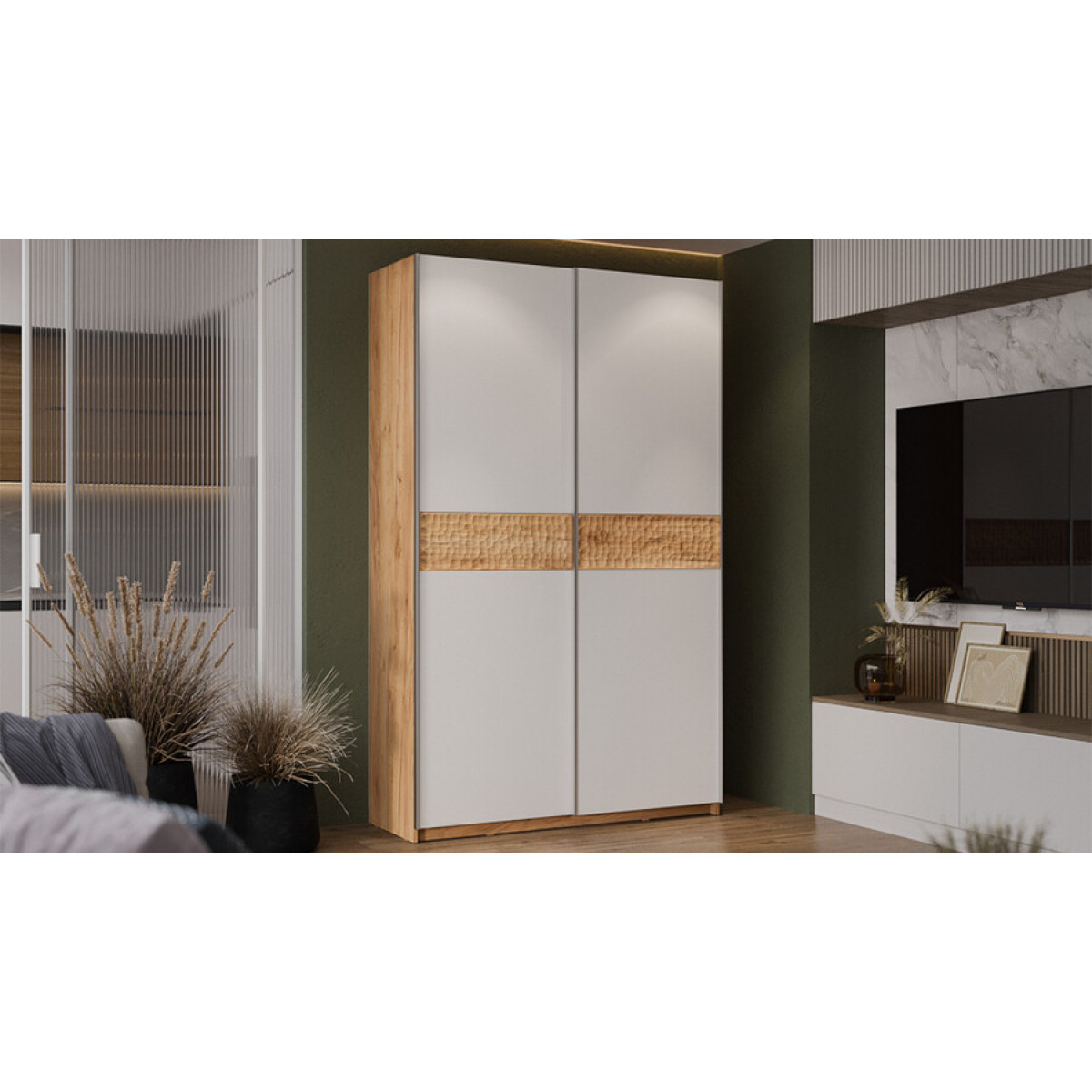 Шкаф-купе с 2 глухими дверями «Оскар Скания» Ручка серебро, Дуб Крафт золотой, Белый снег, Дуб тортугга