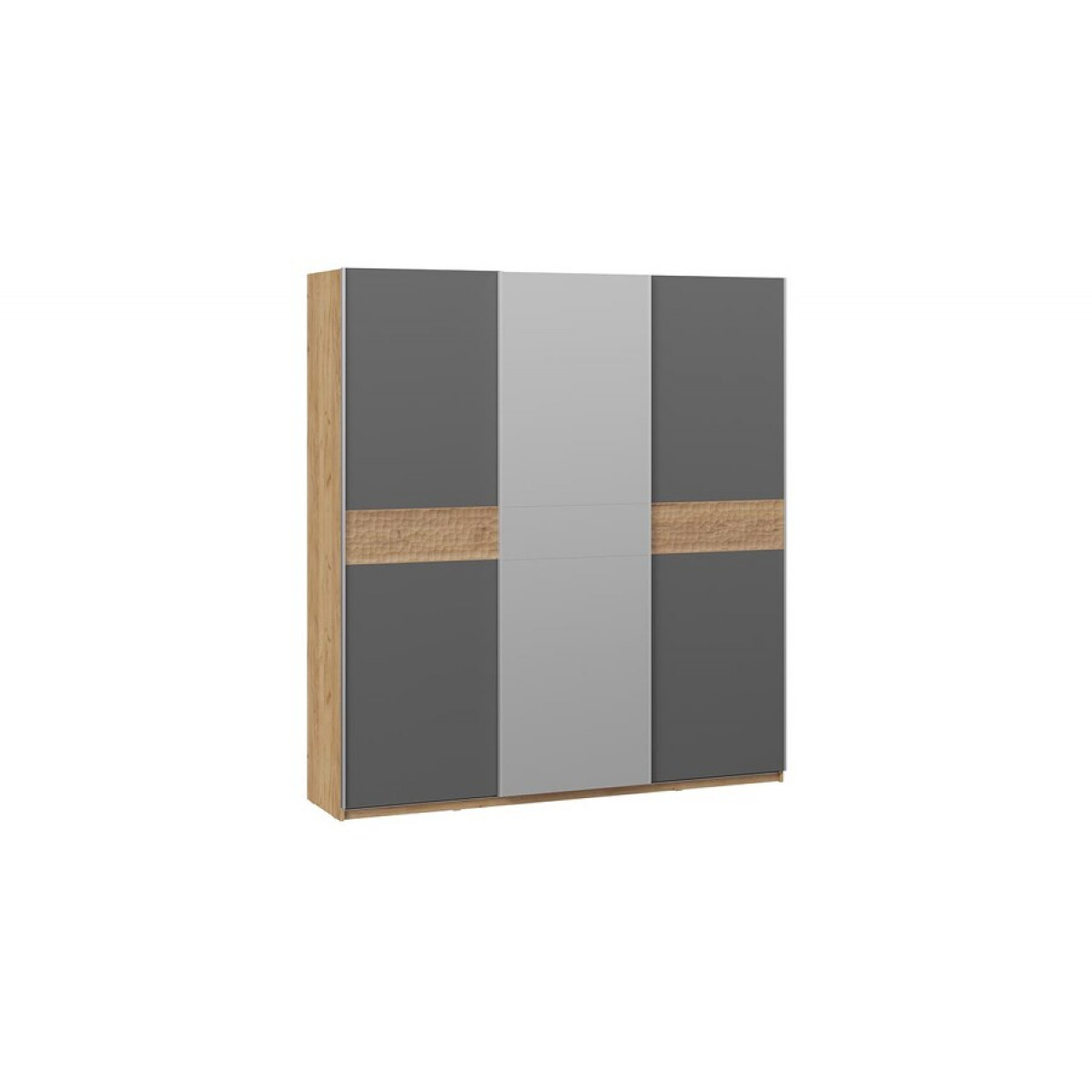 Шкаф-купе с 2 глухими и 1 зеркальной дверями «Оскар Скания» Ручка серебро, Дуб Крафт золотой, Серый графит, Дуб тортугга