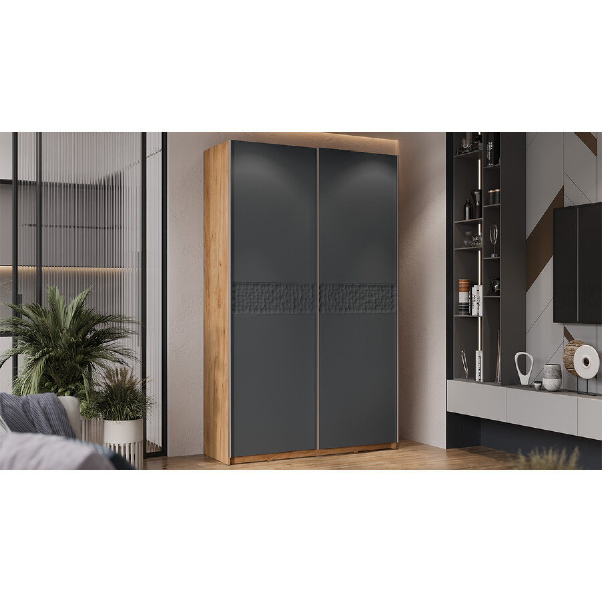 Шкаф-купе с 2 глухими дверями «Оскар Скания» Ручка серебро, Дуб Крафт золотой, Серый графит, Графит матовый