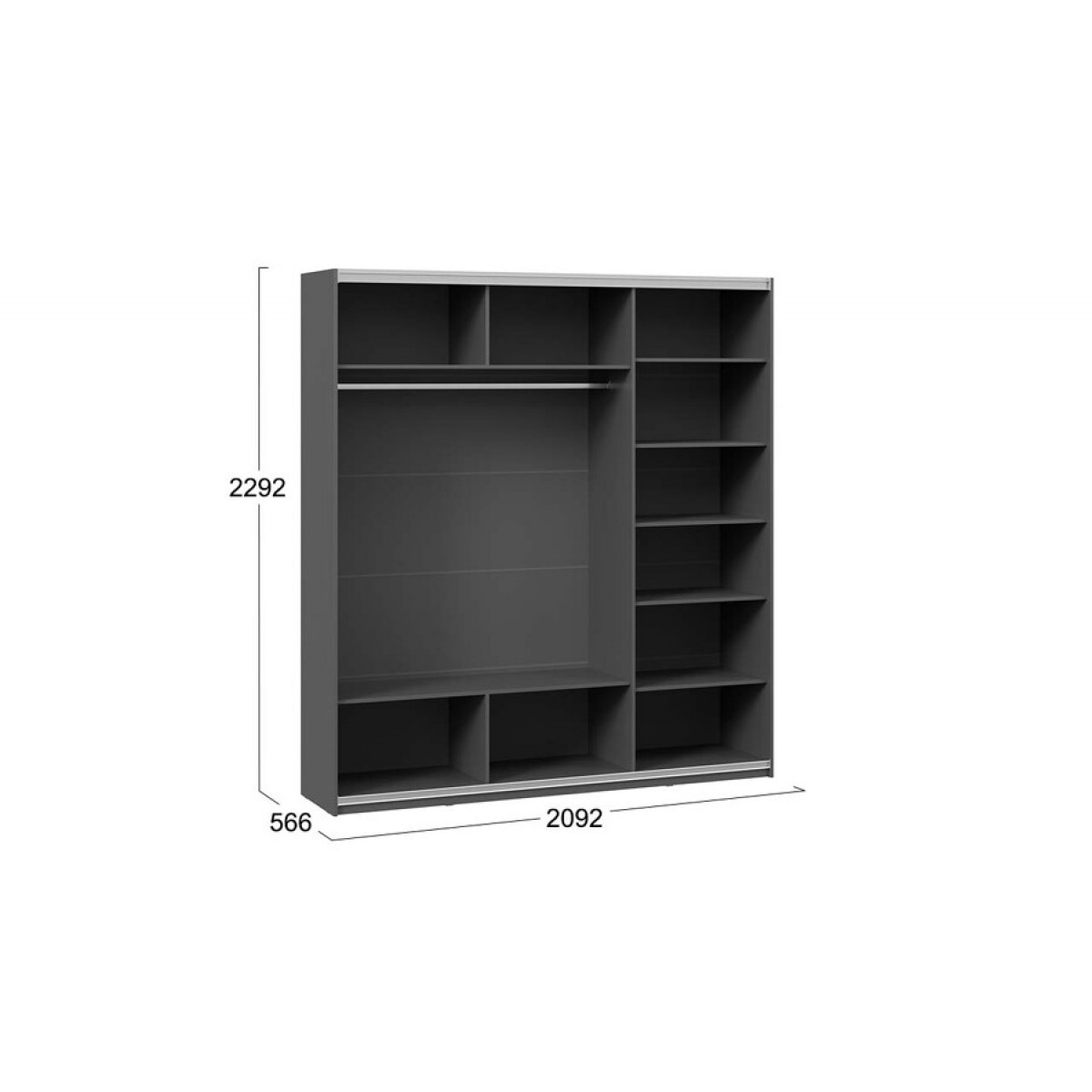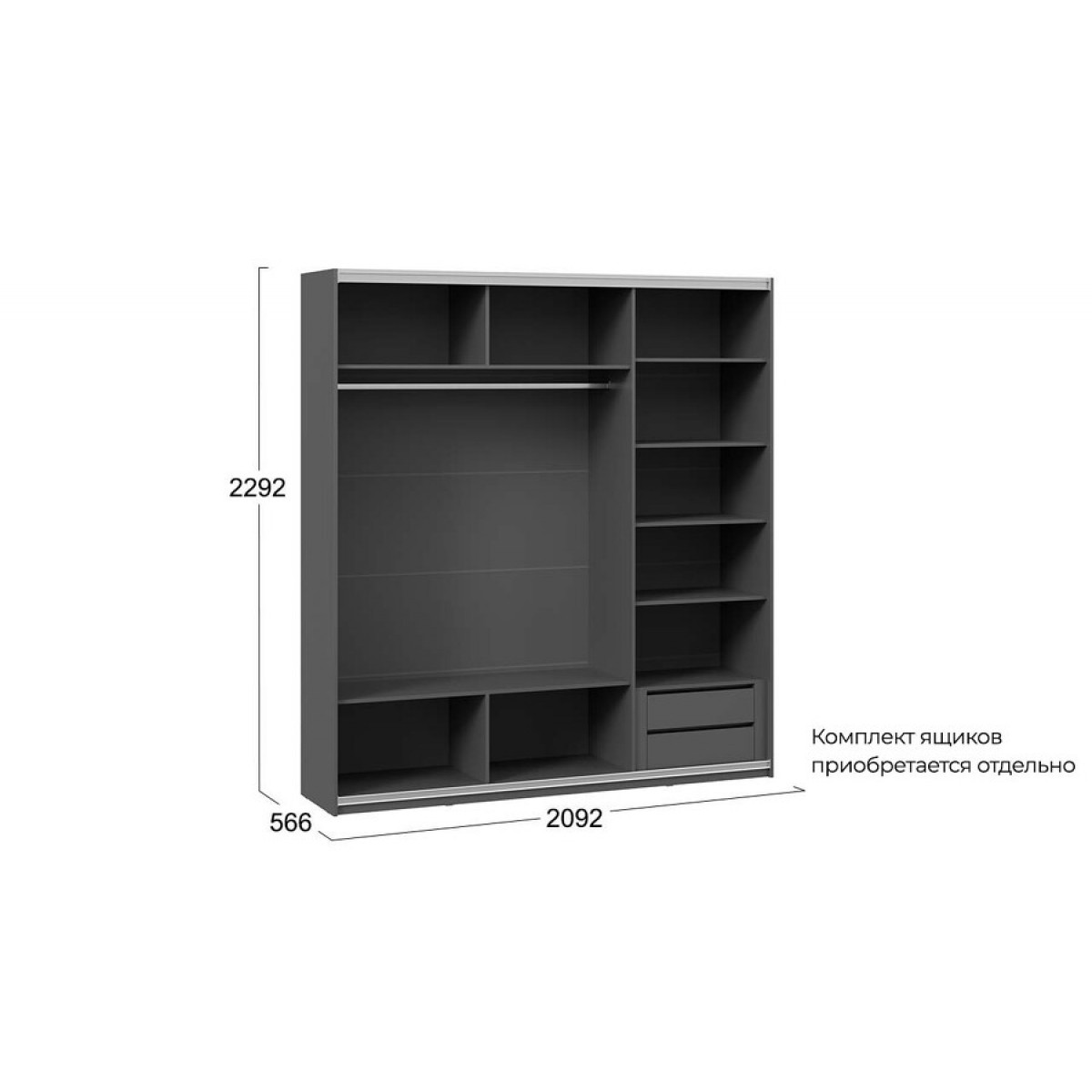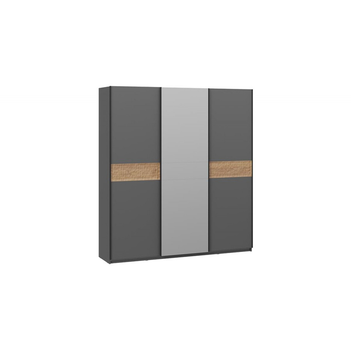 Шкаф-купе с 2 глухими и 1 зеркальной дверями «Оскар Скания» Ручка черная, Серый графит, Дуб тортугга