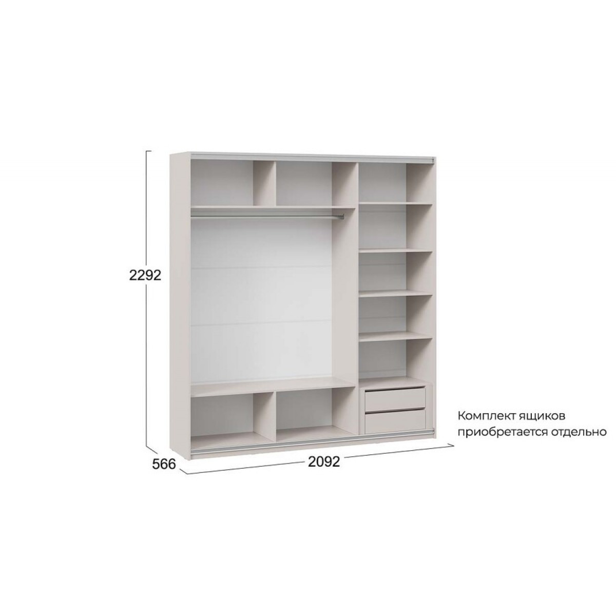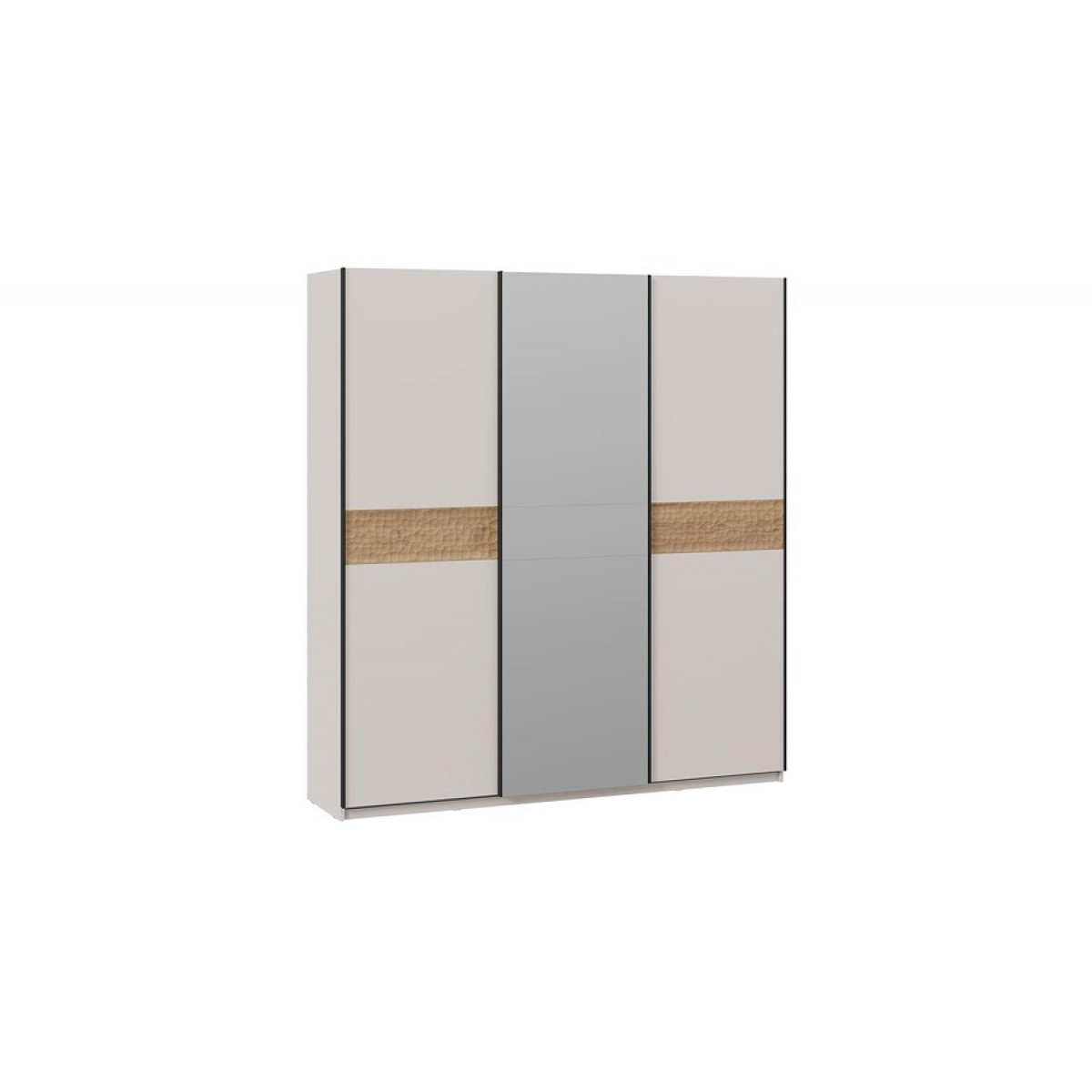 Шкаф-купе с 2 глухими и 1 зеркальной дверями «Оскар Скания» Ручка черная, Кашемир, Дуб тортугга