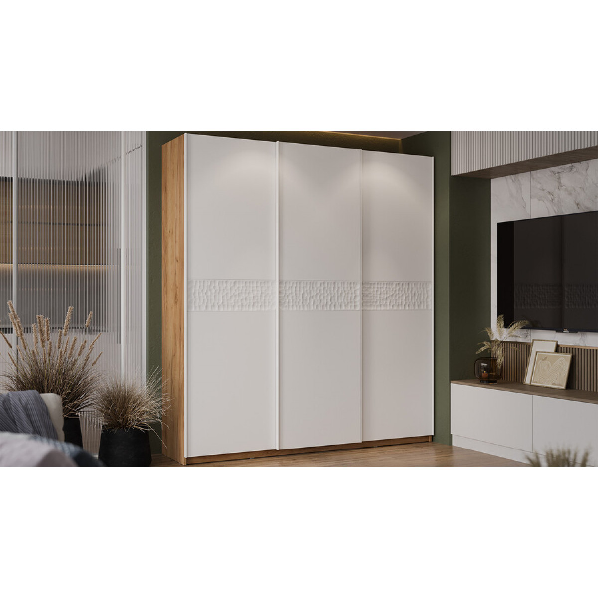 Шкаф-купе с 3 глухими дверями «Оскар Скания» Ручка белая, Дуб Крафт золотой, Белый снег, Белый матовый