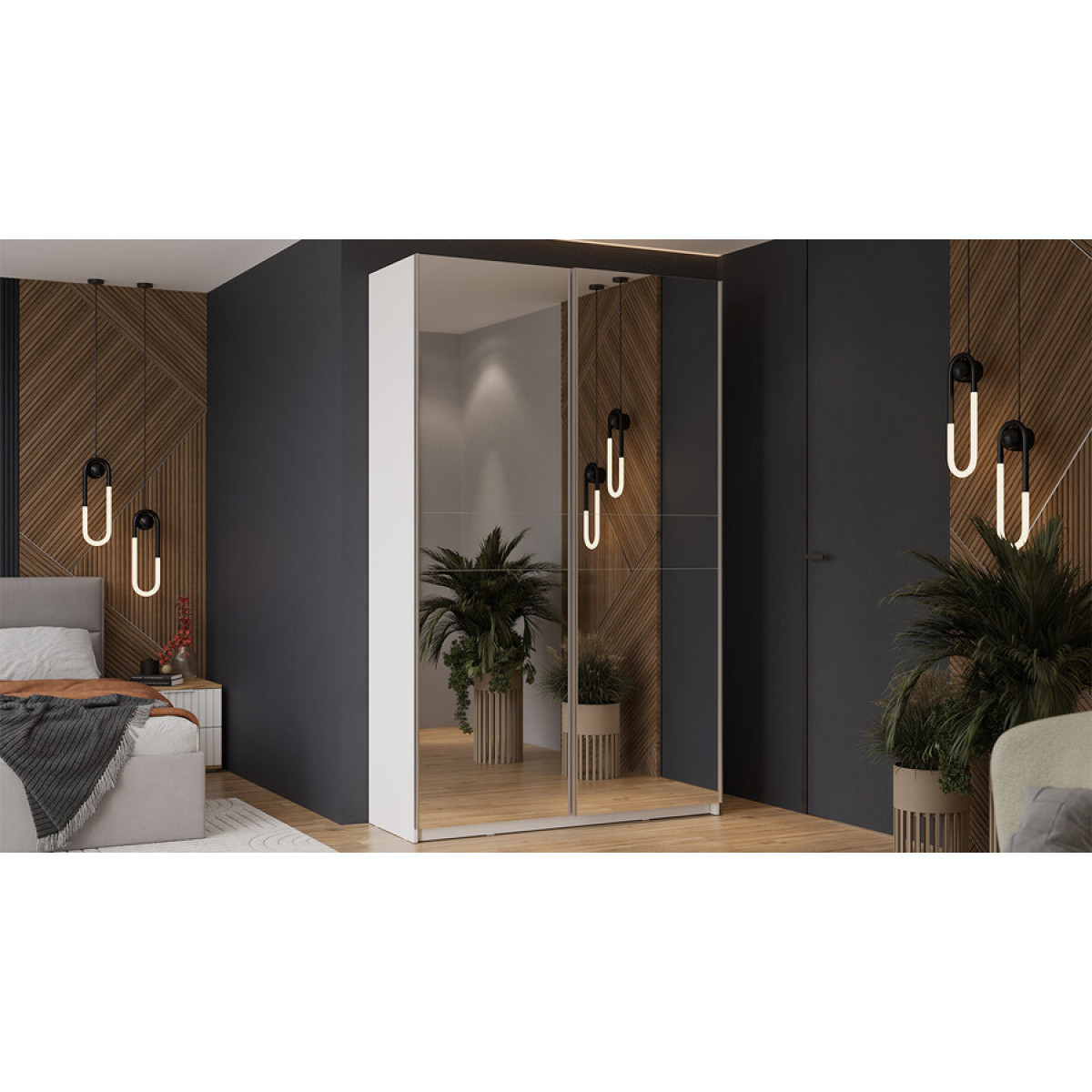 Шкаф-купе с 2 зеркальными дверями «Оскар» Ручка серебро, Белый снег