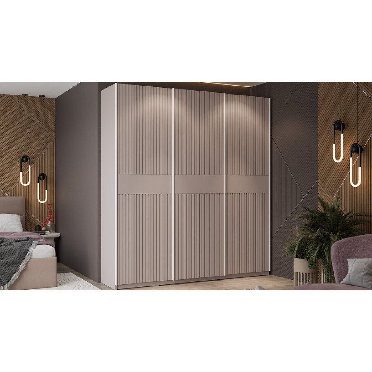 Шкаф-купе с 3 глухими дверями «Оскар Хилтон» Тип 2 Ручка белая, Кашемир, Кашемир сатин