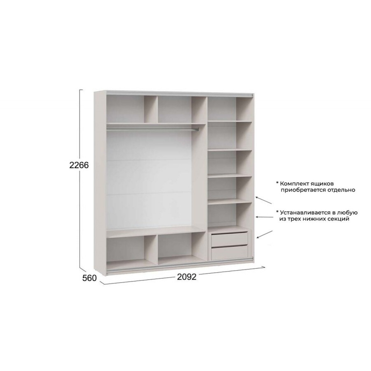 Шкаф-купе с 2 глухими и 1 зеркальной дверями «Оскар Хилтон» Тип 2 Ручка серебро, Кашемир, Кашемир сатин