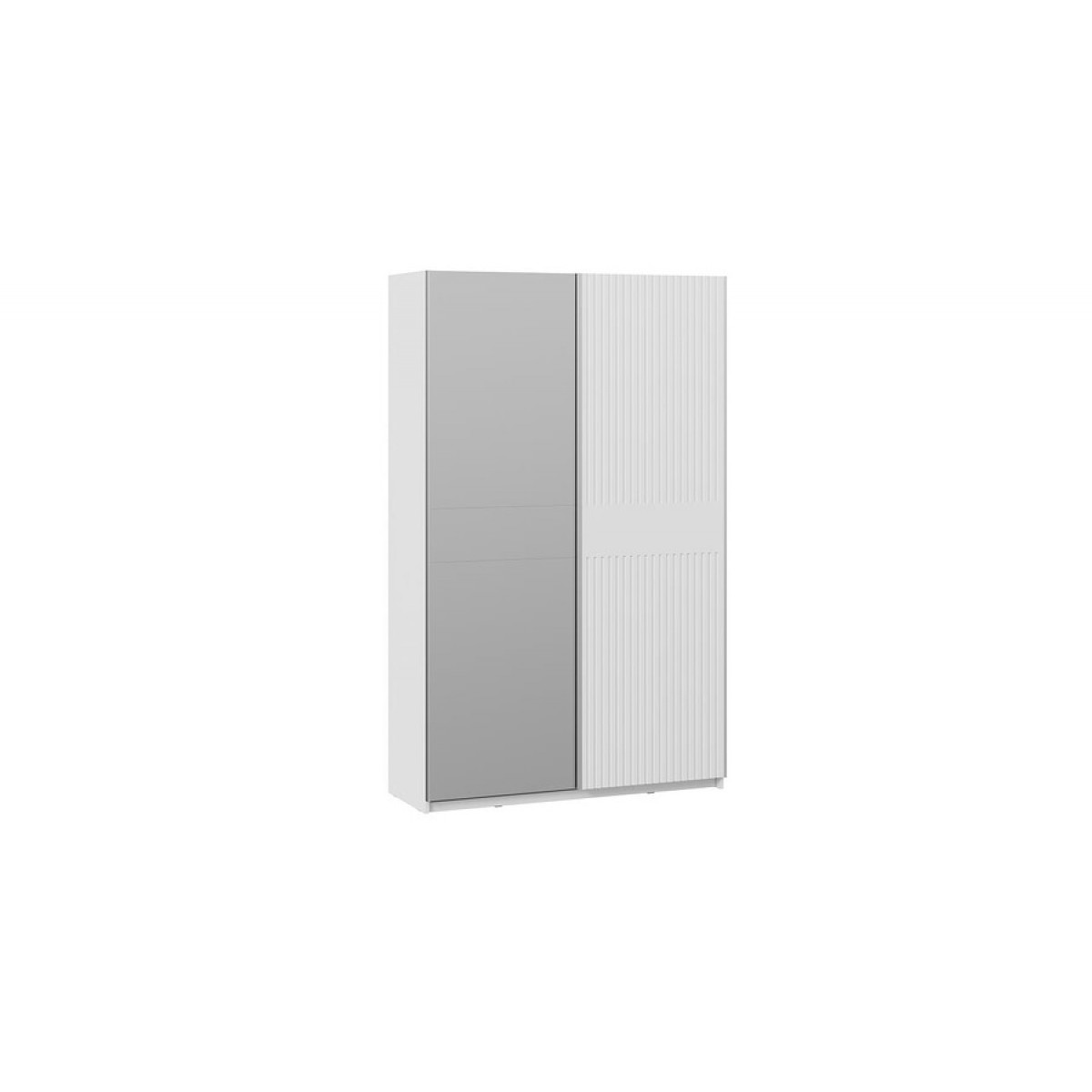 Шкаф-купе с 1 глухой и 1 зеркальной дверями «Оскар Хилтон» Тип 2 Ручка серебро, Белый снег, Белый матовый