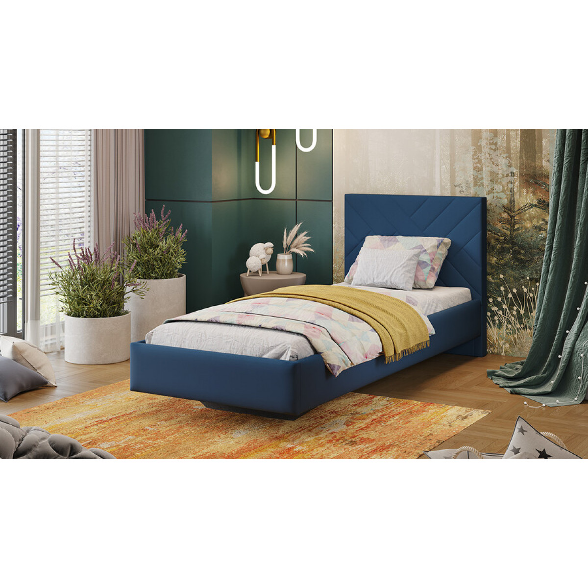Кровать без ПМ «Кевия» Тип 1 (без подъемного механизма) Велюр Confetti Blue