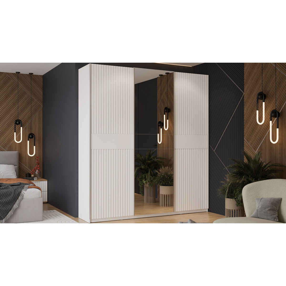 Шкаф-купе с 2 глухими и 1 зеркальной дверями «Оскар Тиффани» Тип 2 Ручка серебро, Белый снег, Белый софт