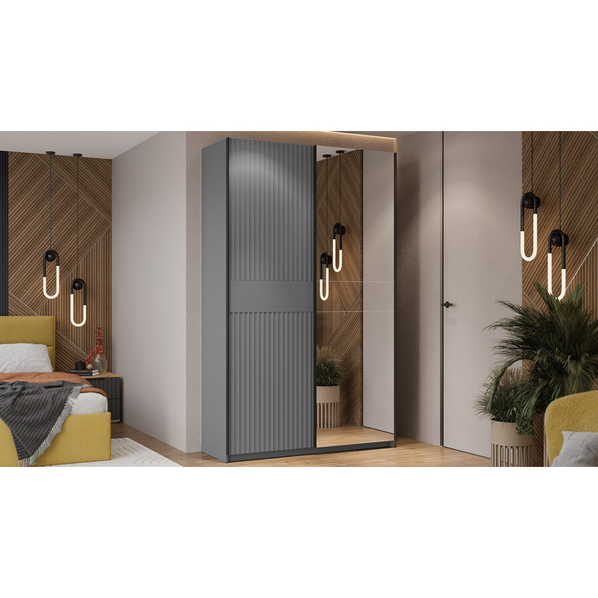 Шкаф-купе с 1 глухой и 1 зеркальной дверями «Оскар Тиффани» Тип 2 Ручка черная, Серый графит, Графит матовый