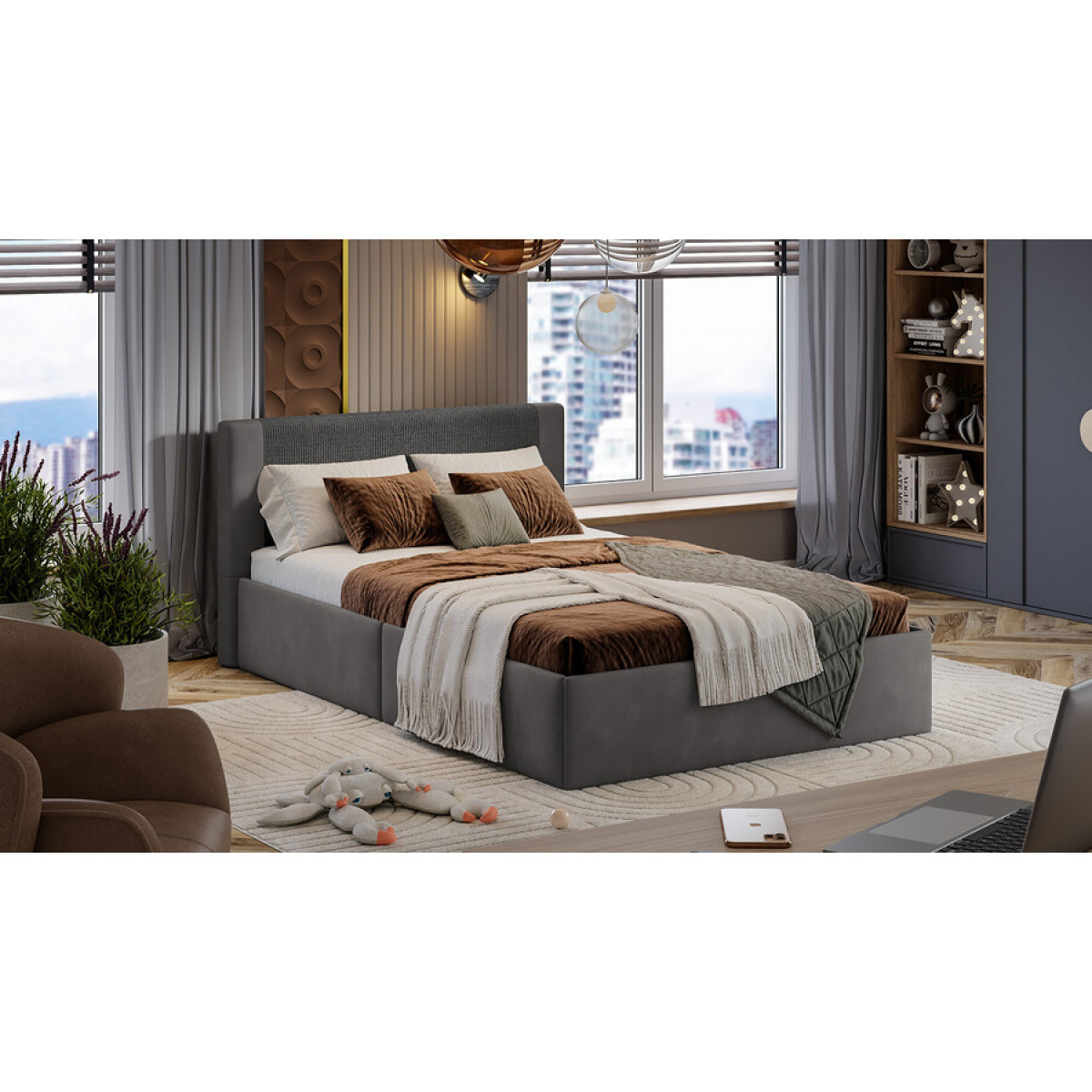 Кровать «Тейлор» Микровелюр Linea Grande 66/Connect 66 (серо-коричневый)