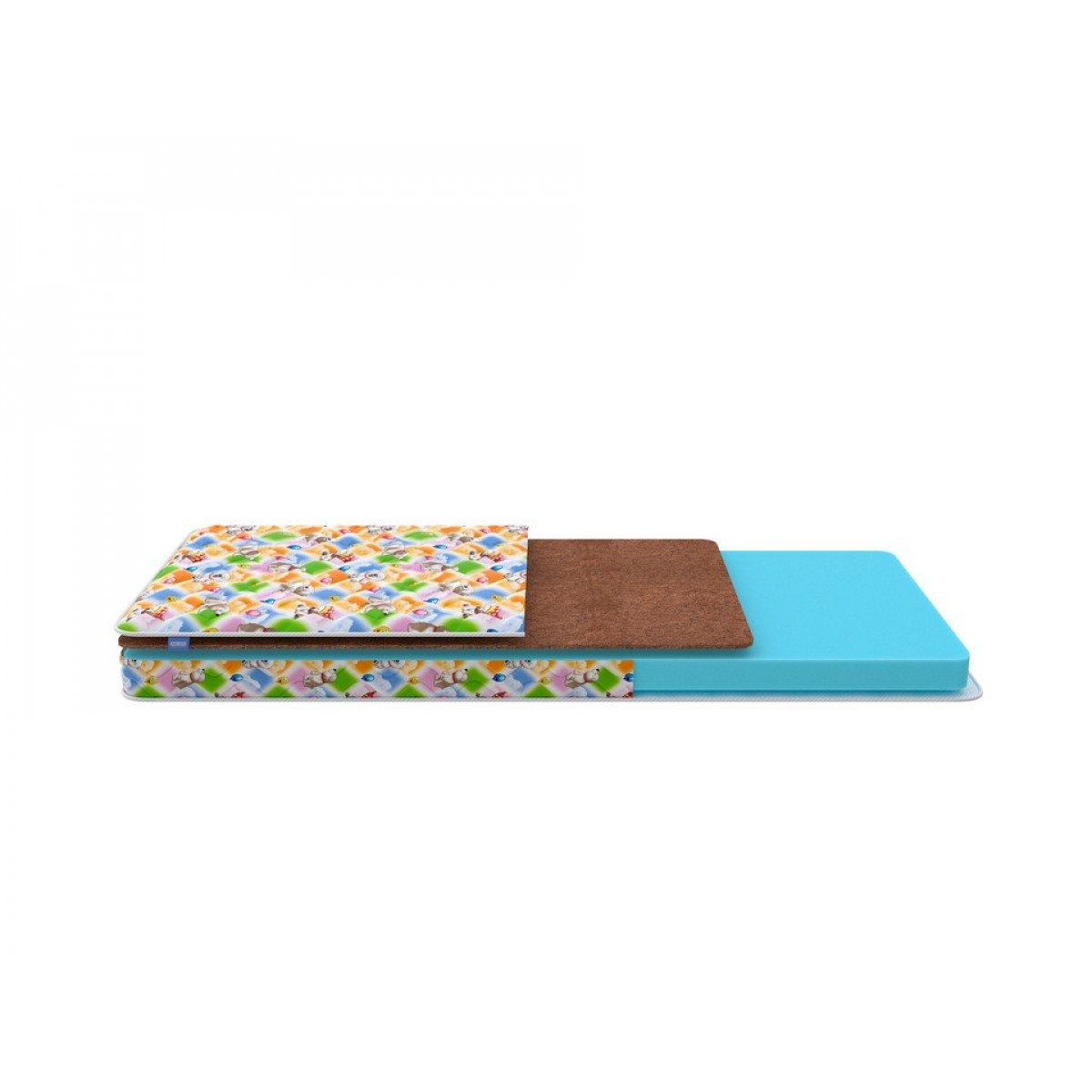Беспружинный матрас с разной жесткостью сторон. Прочная и долговечная кокосовая койра обеспечит необходимую жесткость во время сна для правильного формирования осанки. Натуральный природный материал хорошо пропускает воздух и обладает антибактериальным эффектом, матрас с таким наполнителем хорошо вентилируется.