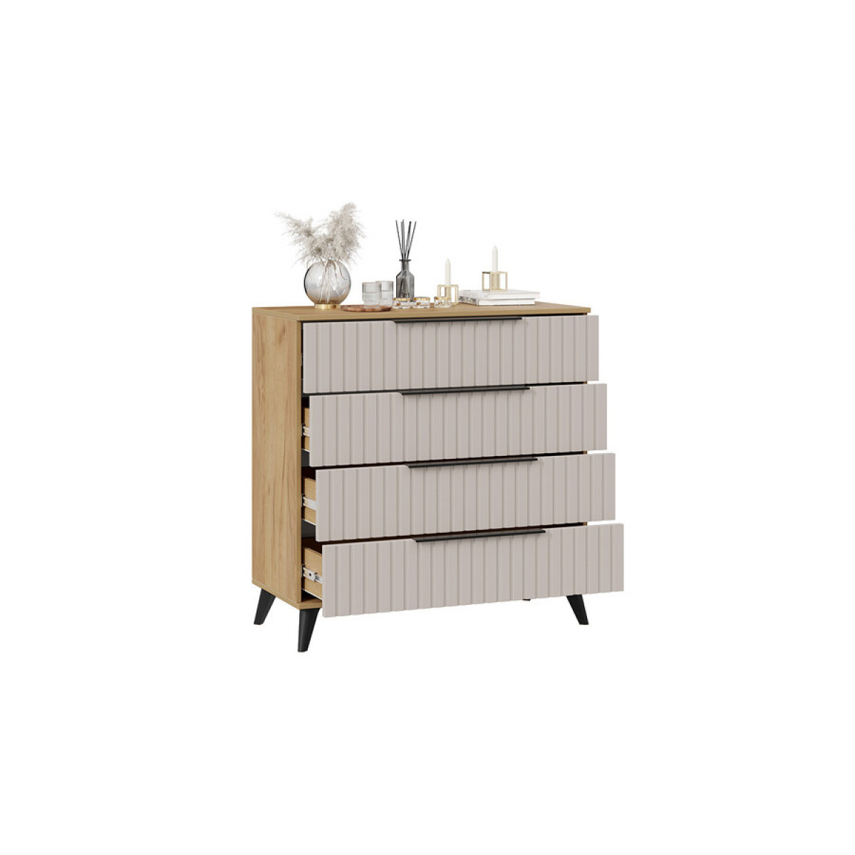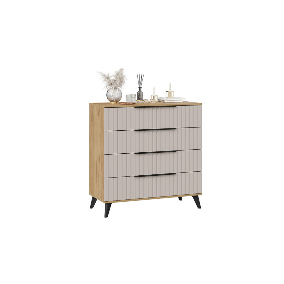 Комод «Хилтон» с опорами Черный матовый, Дуб Крафт золотой, Мокко матовый