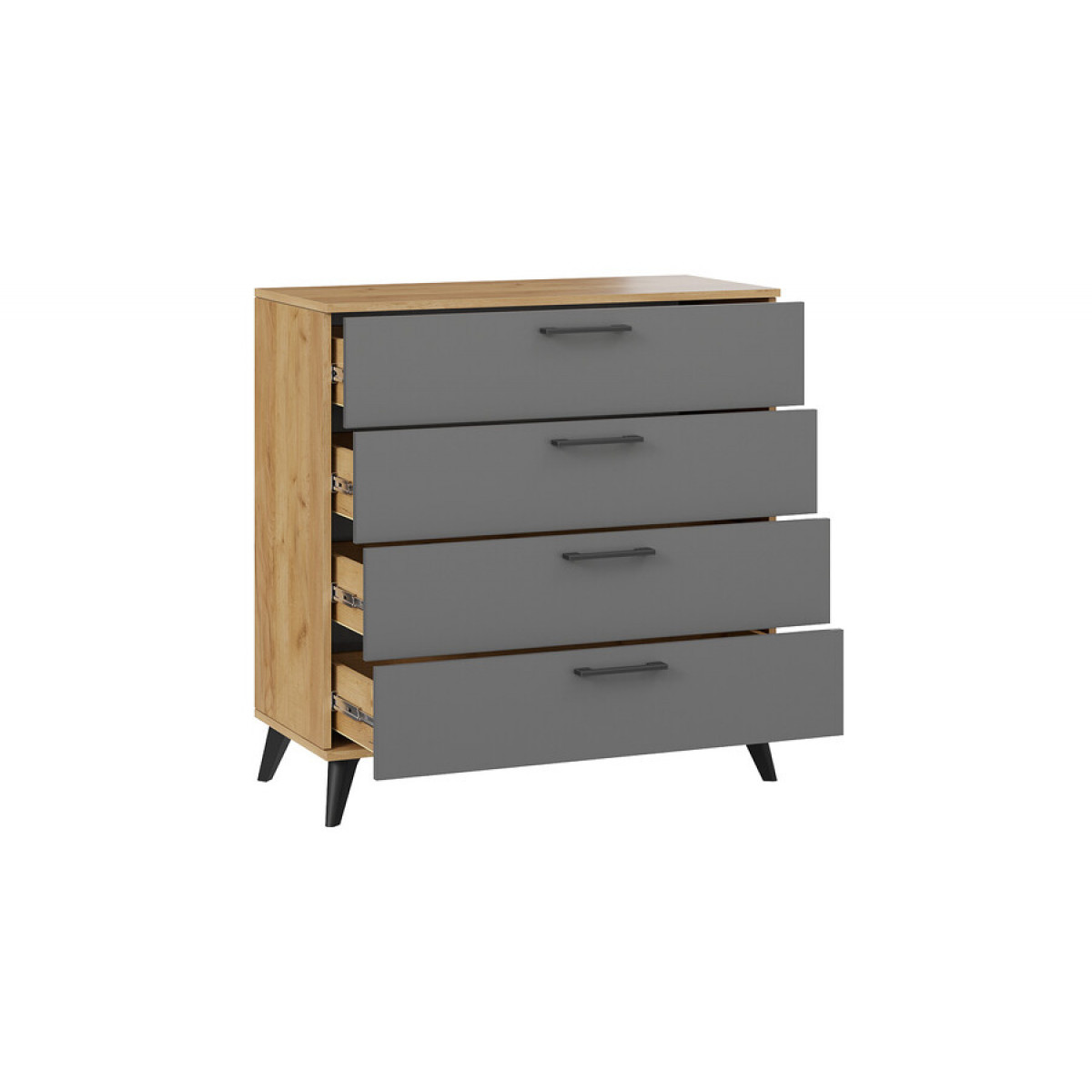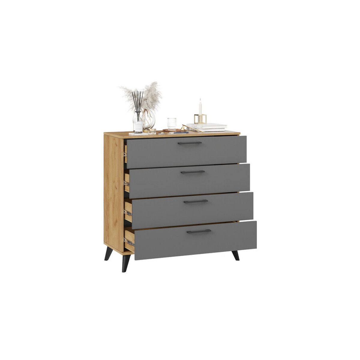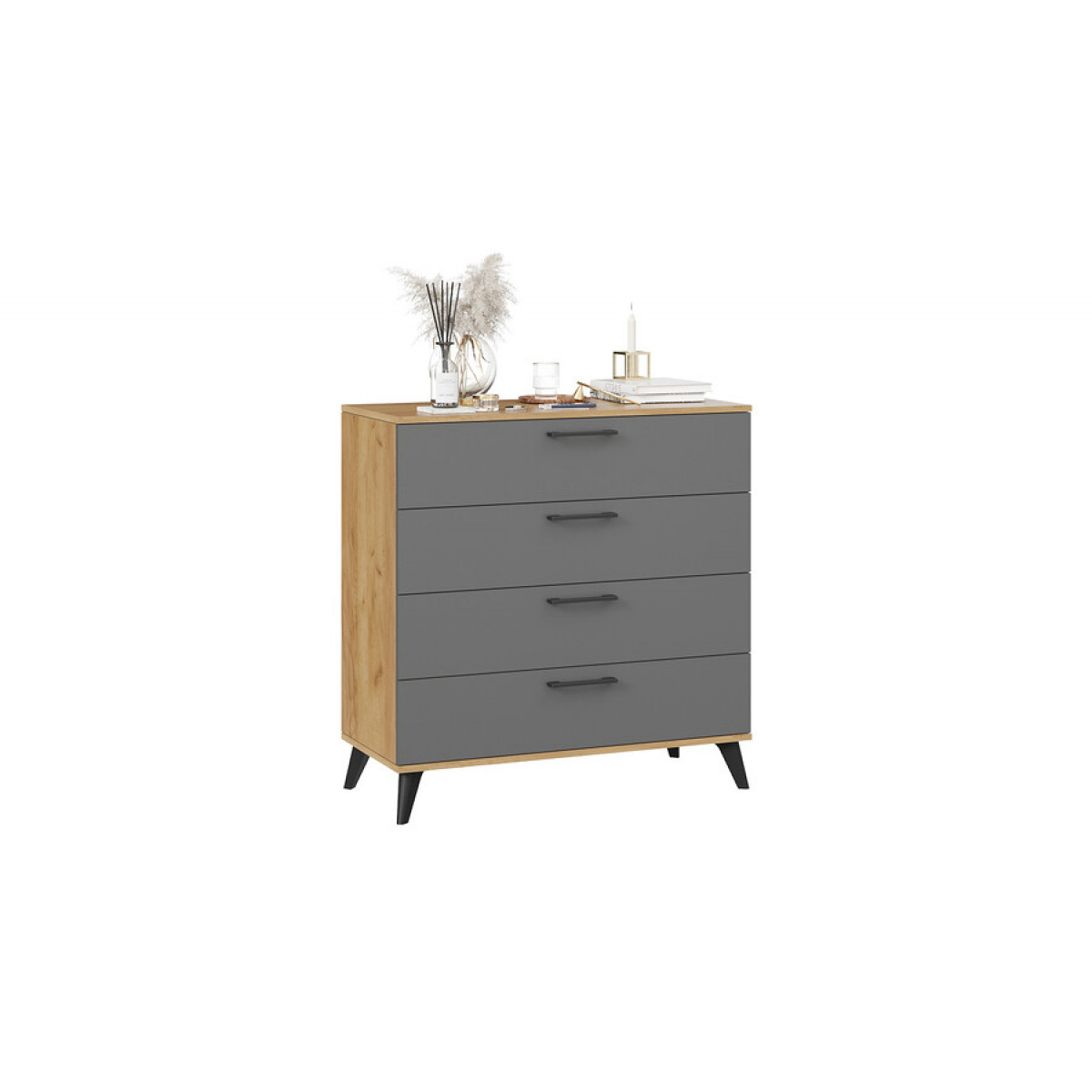 Комод «Нео» с опорами Дуб Крафт золотой, Серый графит, Черный матовый