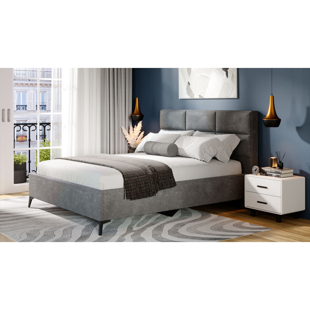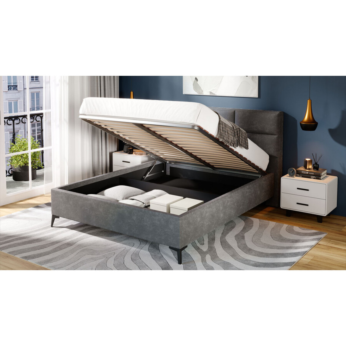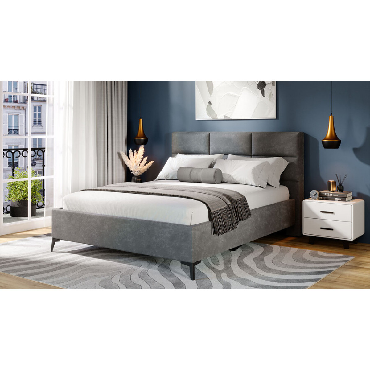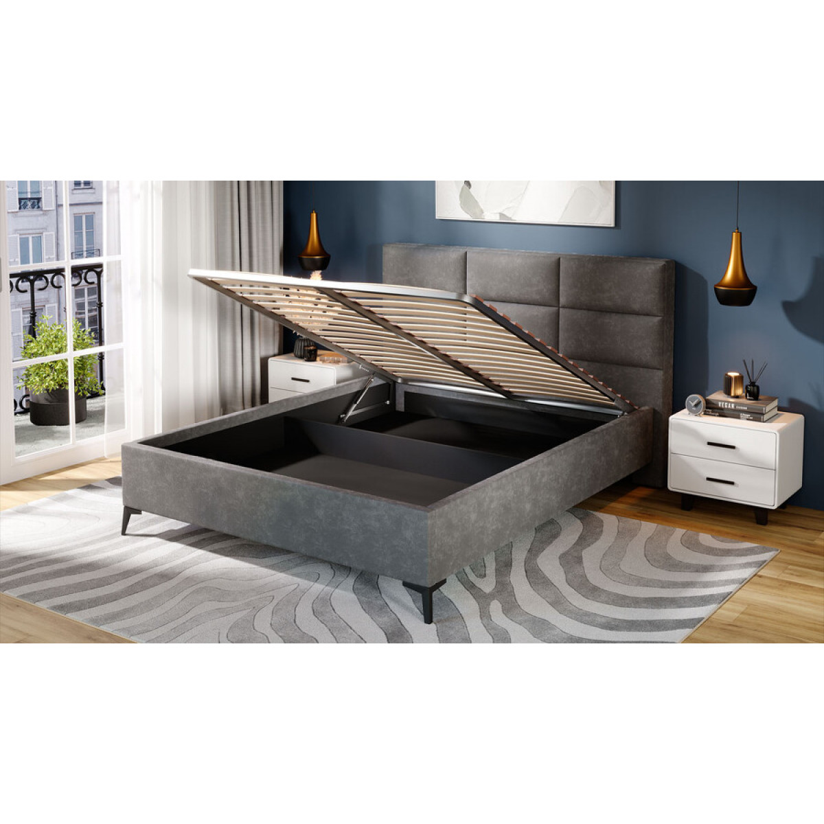 Кровать с ПМ «Делана» (с подъемным механизмом) Велюр Brut Grey 16