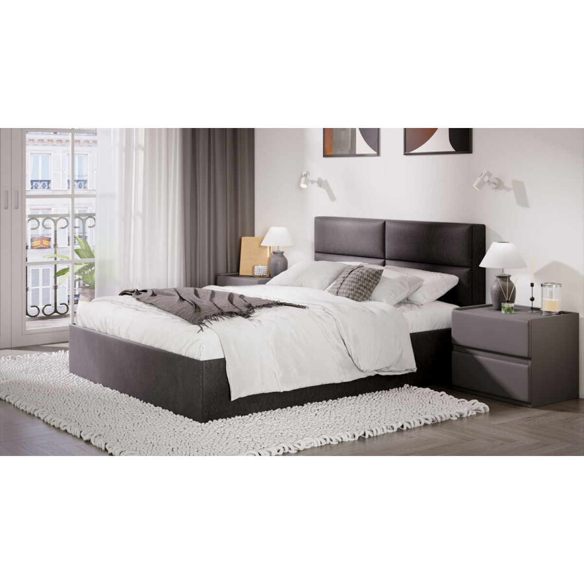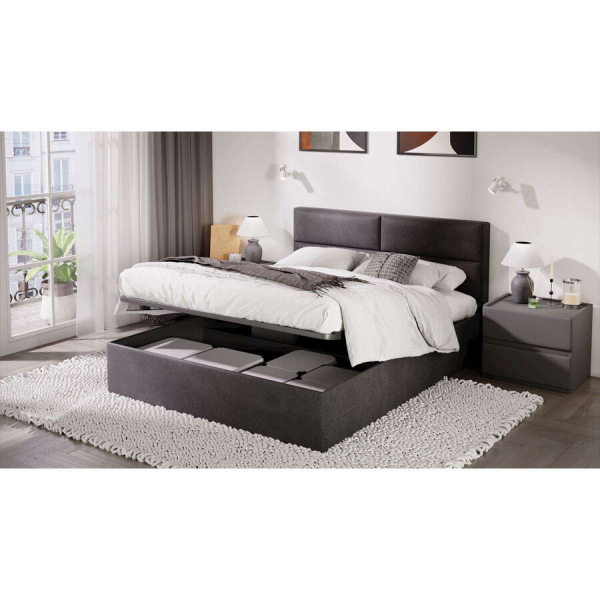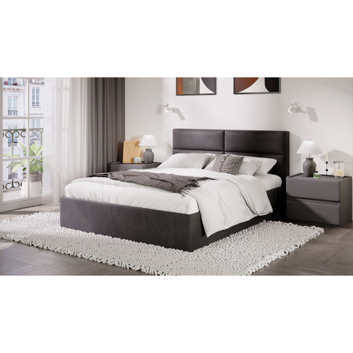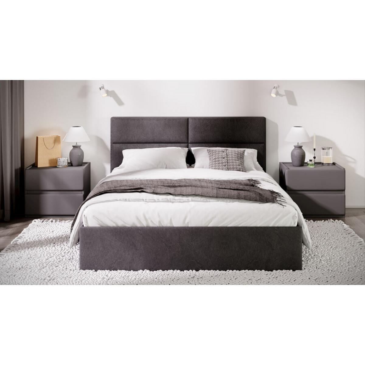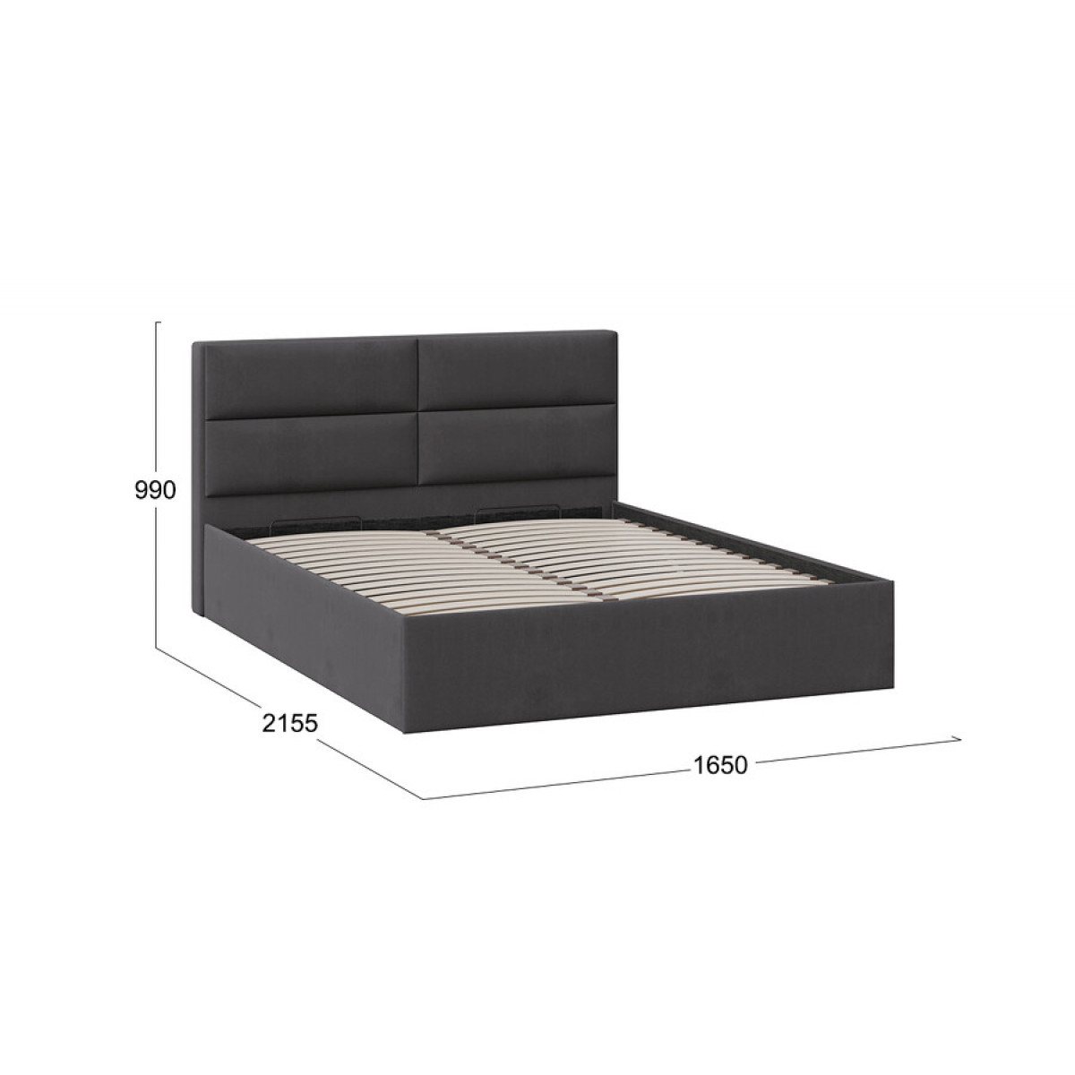 Кровать с ПМ «Глосс» Тип 1 (с подъемным механизмом) с заглушиной Велюр Графит