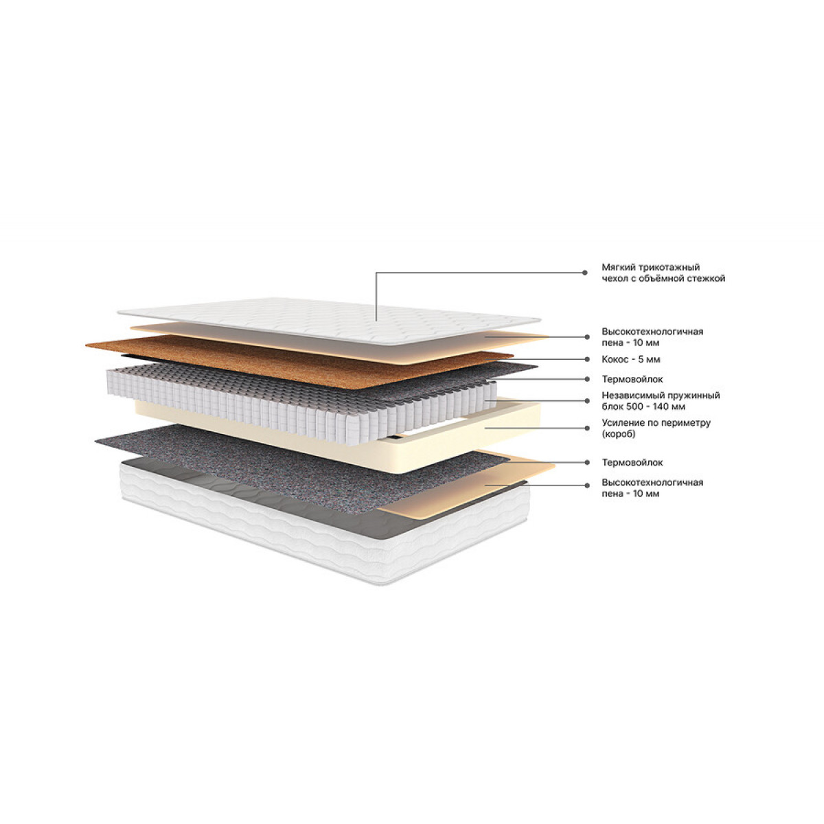 ППУ, независимый пружинный блок, термовойлок, кокос, высокоэластичная пена