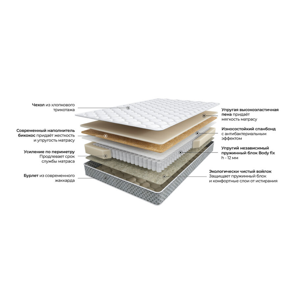 ППУ, Бикокос, Спанбонд, Пружинный блок, ППУ короб, Войлок