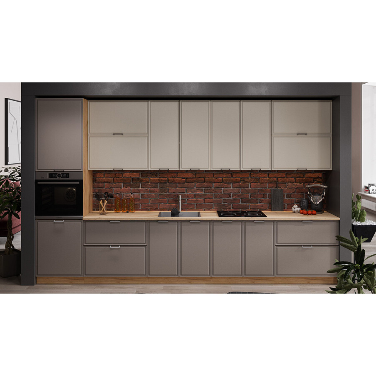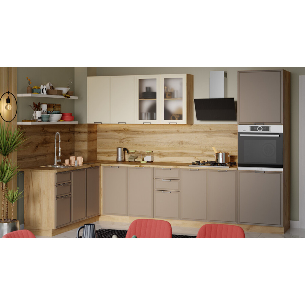 Модульная кухня «Белладжио» Дуб Крафт золотой, Софт панакота, Софт капучино