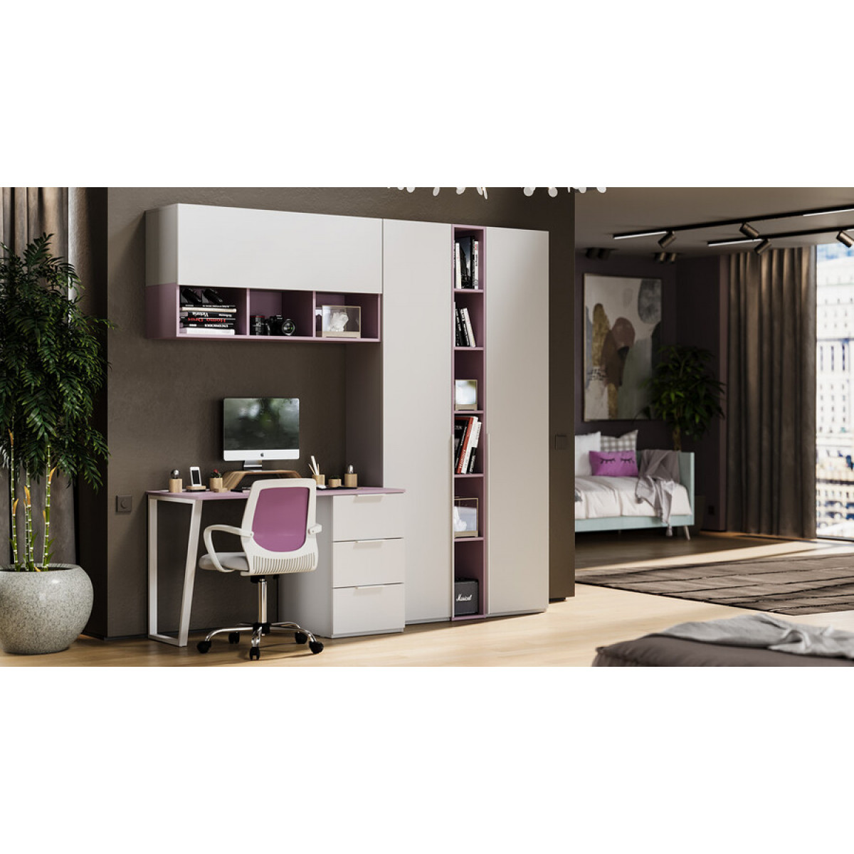 Набор детской мебели «Порто» №9 - ГН-393.109 Белый жемчуг, Виола, Белый софт