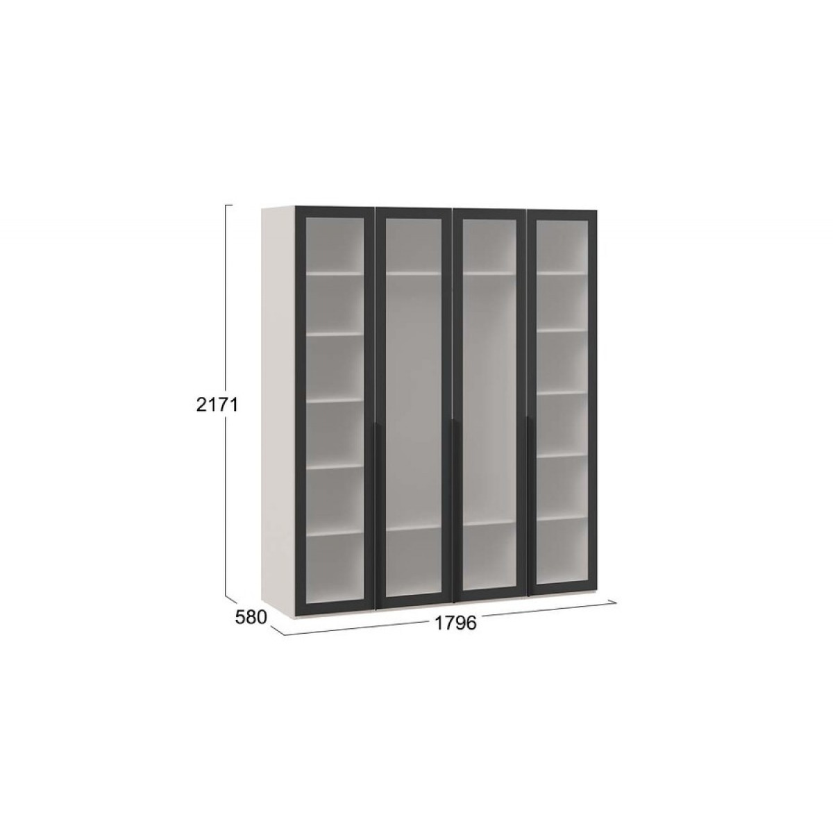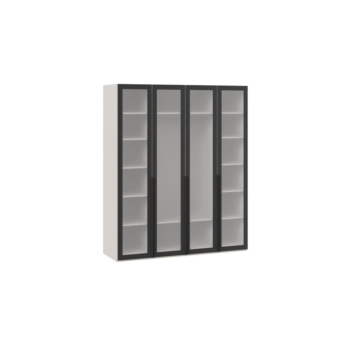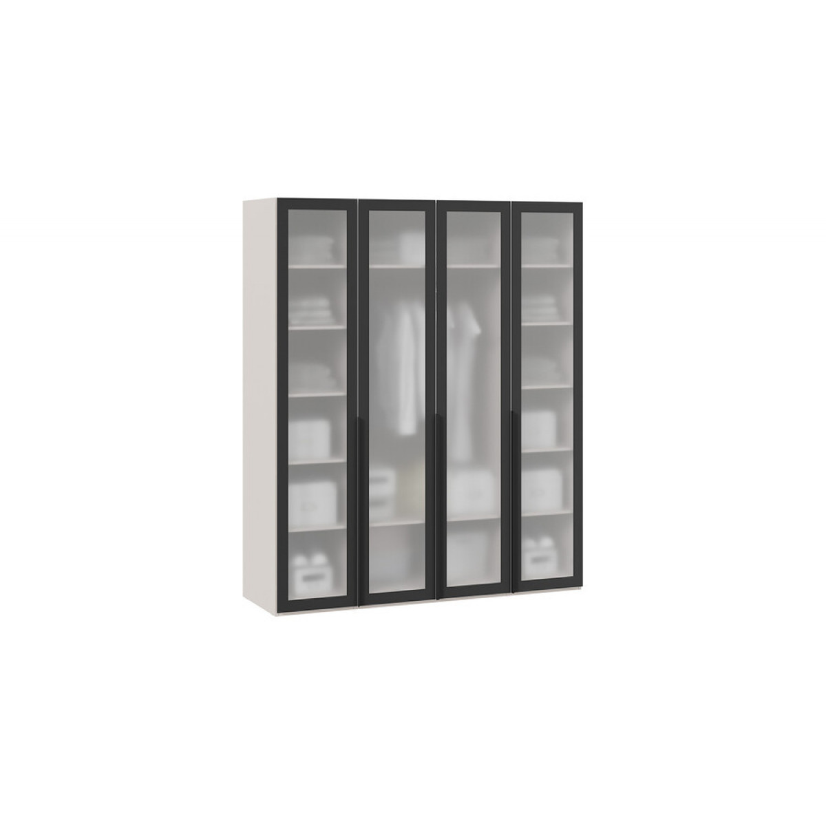 Шкаф для одежды (580) с 4 стеклянными дверями - СМ-393.07.114 Кашемир матовый, Графит, Стекло сатин черное