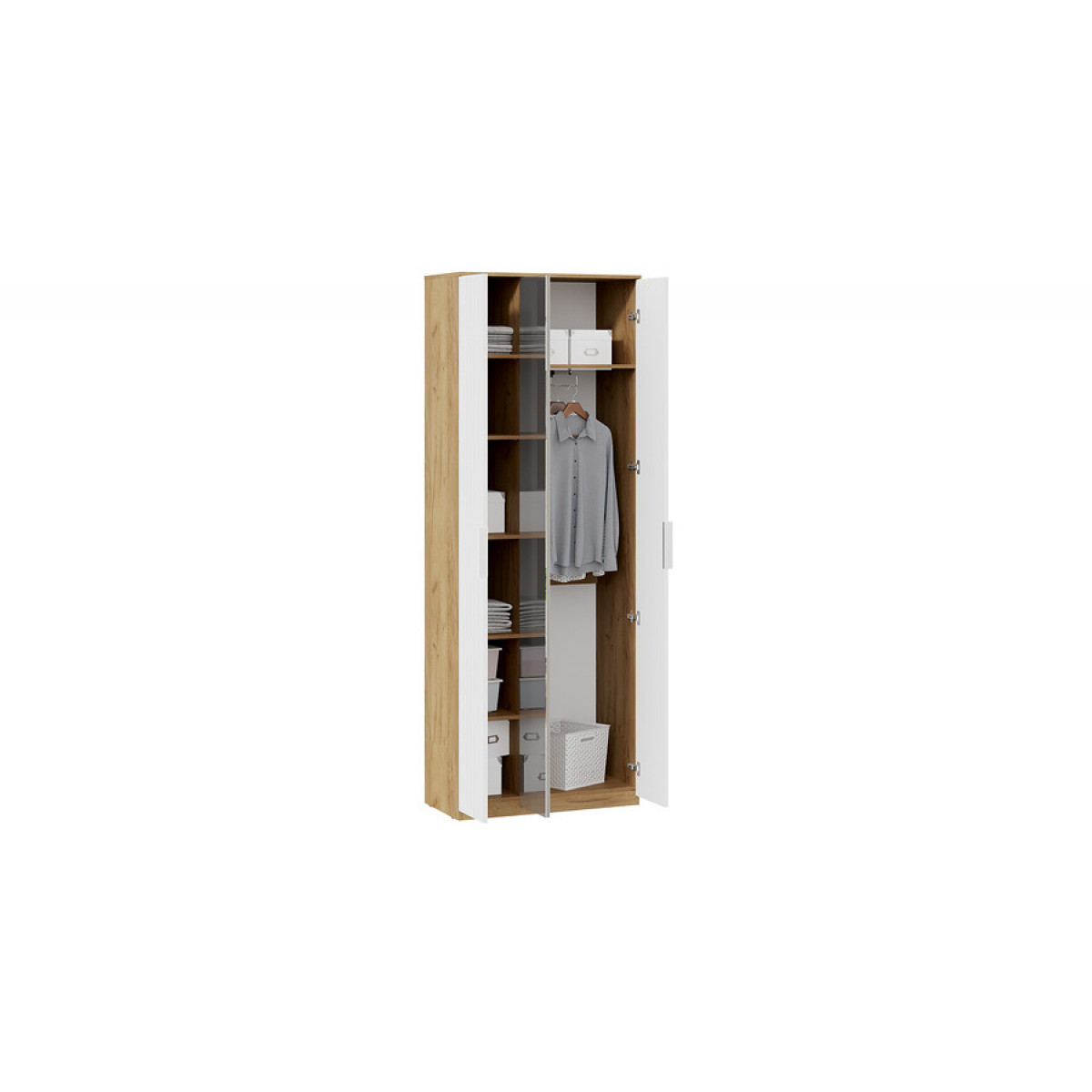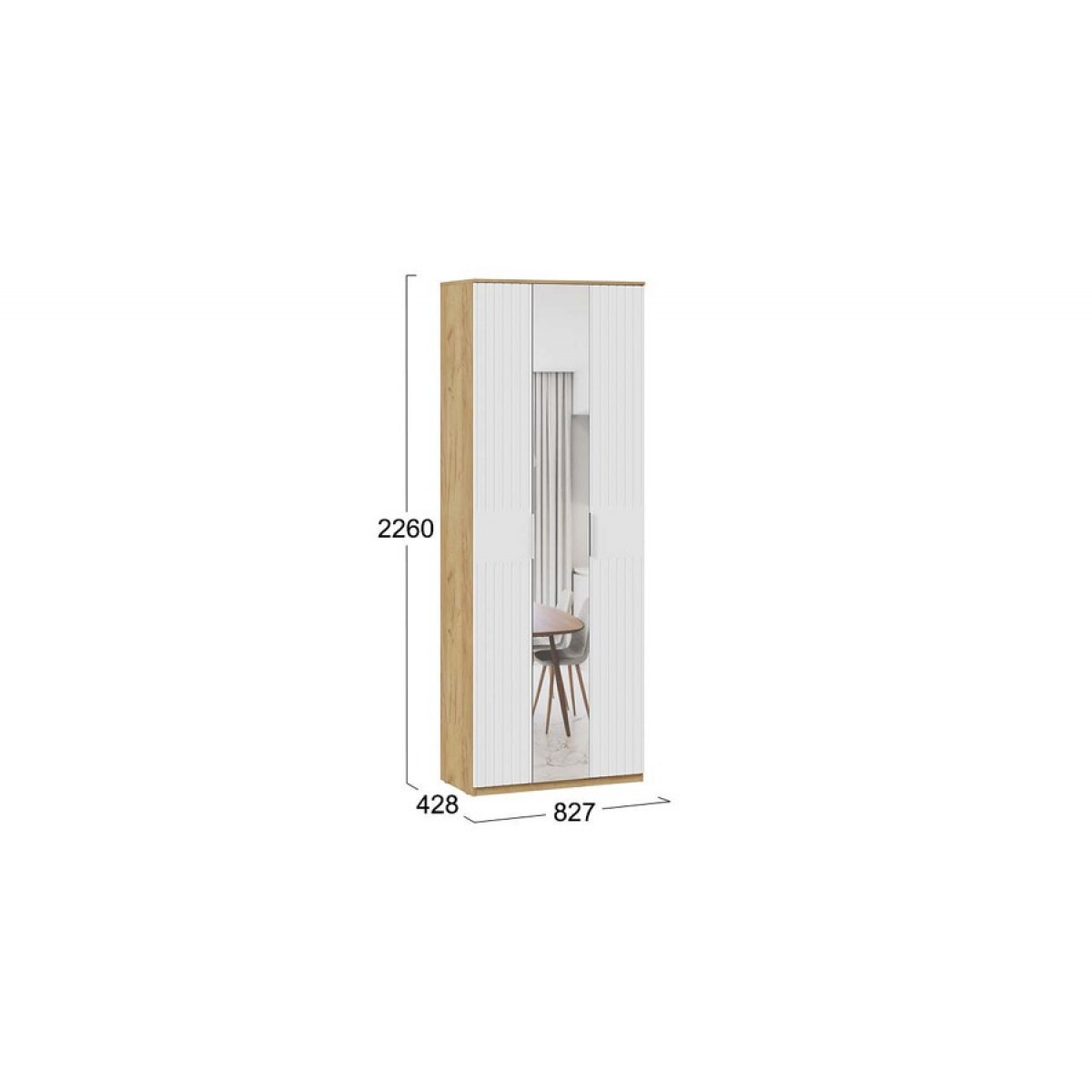 Шкаф для одежды с зеркалом «Хилтон» Тип 2 - 303.015.000 Дуб Крафт золотой, Белый матовый