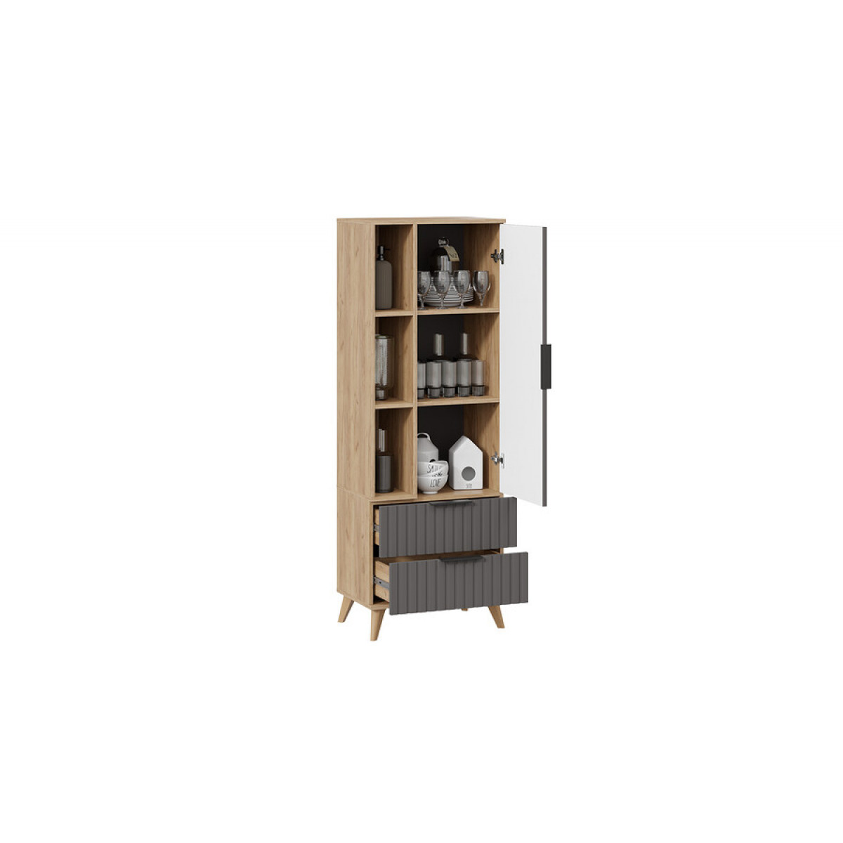 Шкаф для посуды «Хилтон» Исп.2 с опорами Бук матовый, Дуб Крафт золотой, Графит матовый