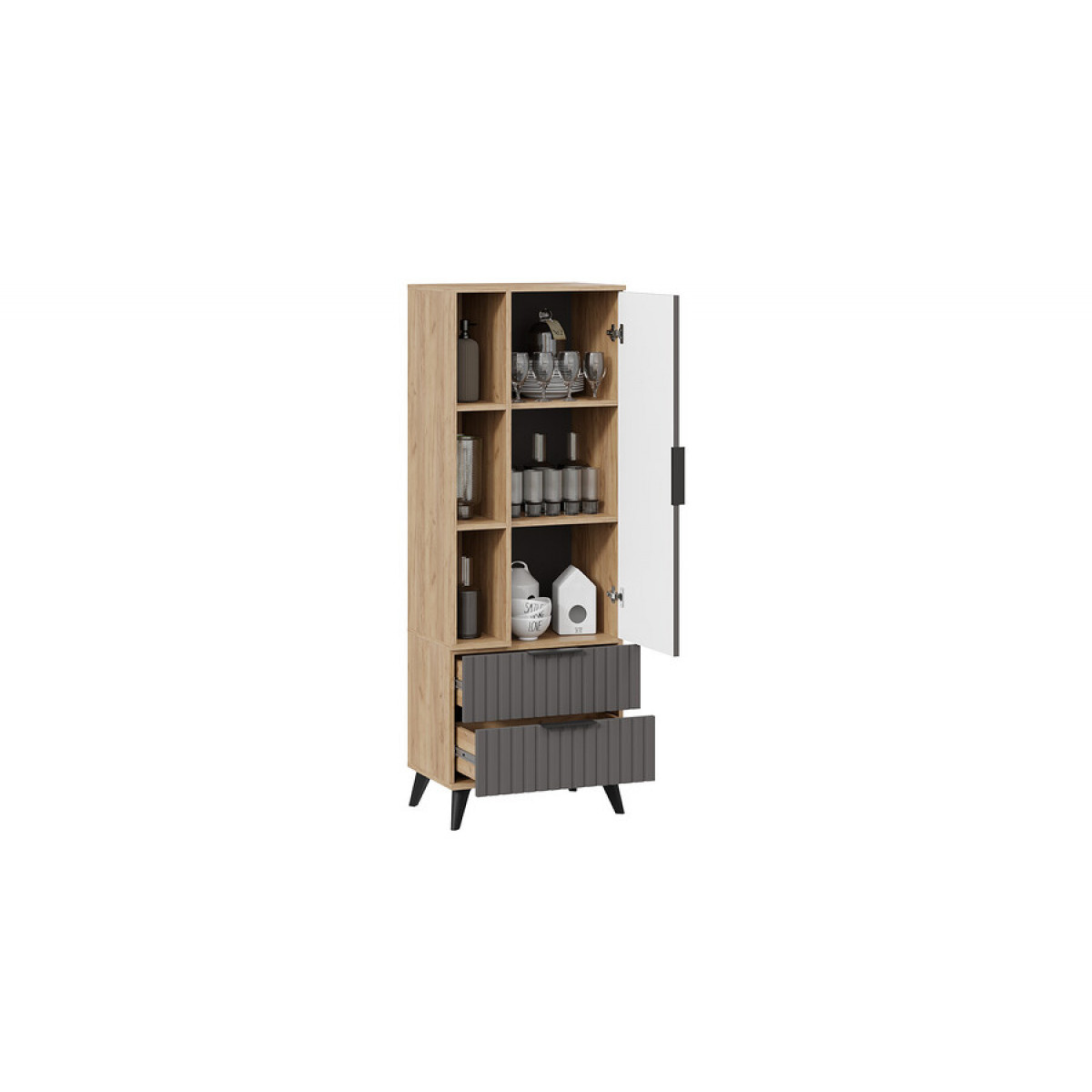 Шкаф для посуды «Хилтон» Исп.2 с опорами Черный матовый, Дуб Крафт золотой, Графит матовый
