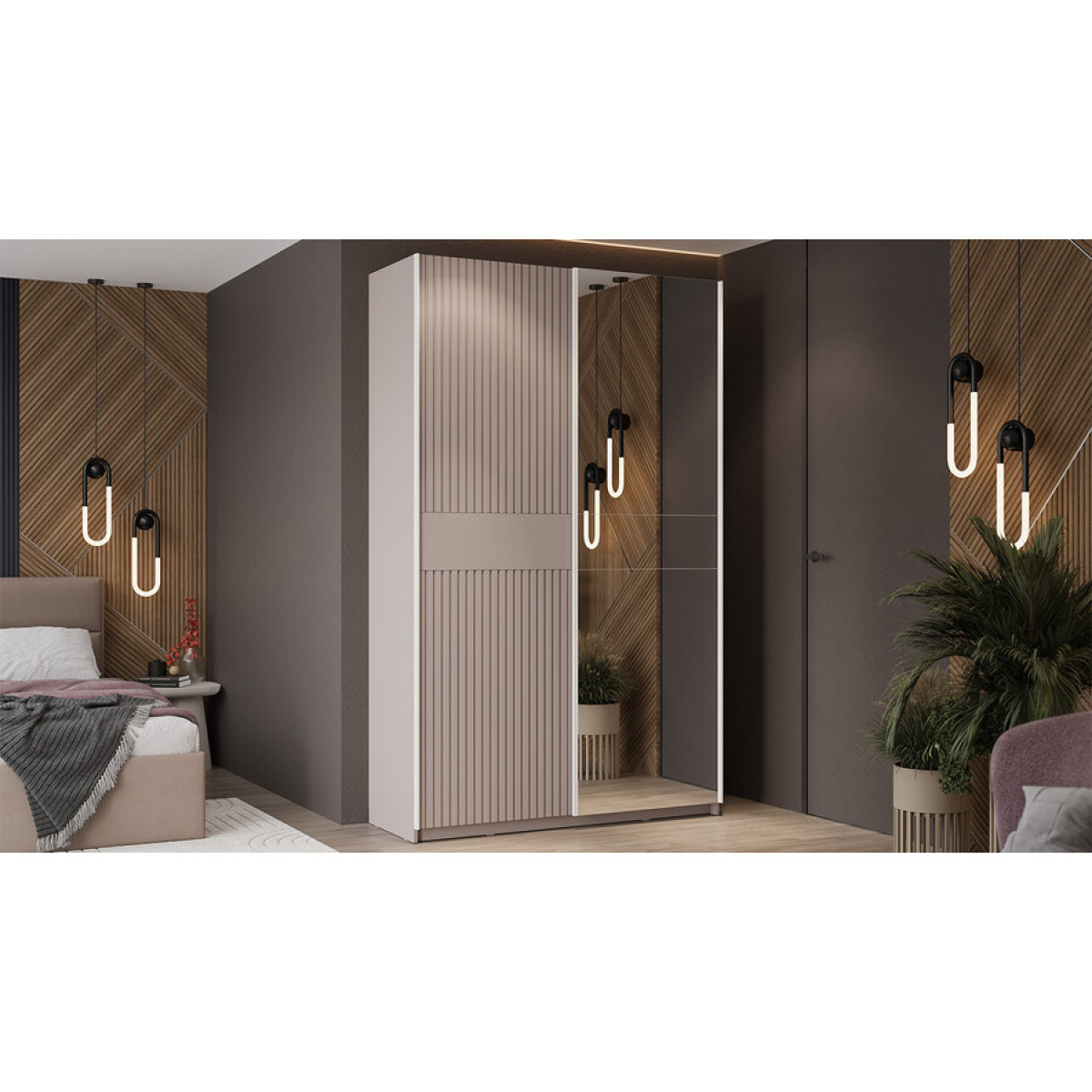 Шкаф-купе с 1 глухой и 1 зеркальной дверями «Оскар Хилтон» Тип 2 Ручка белая, Кашемир, Кашемир сатин