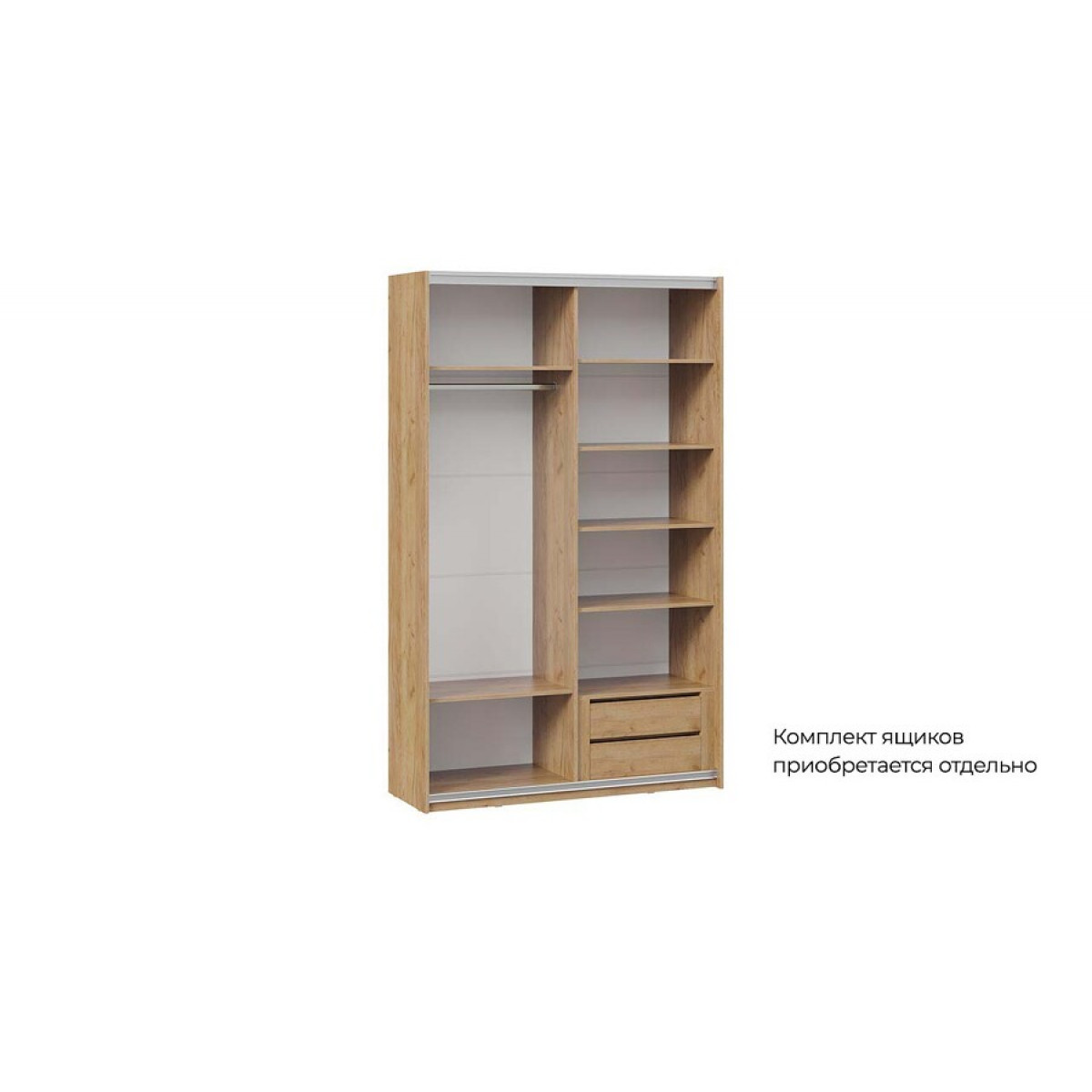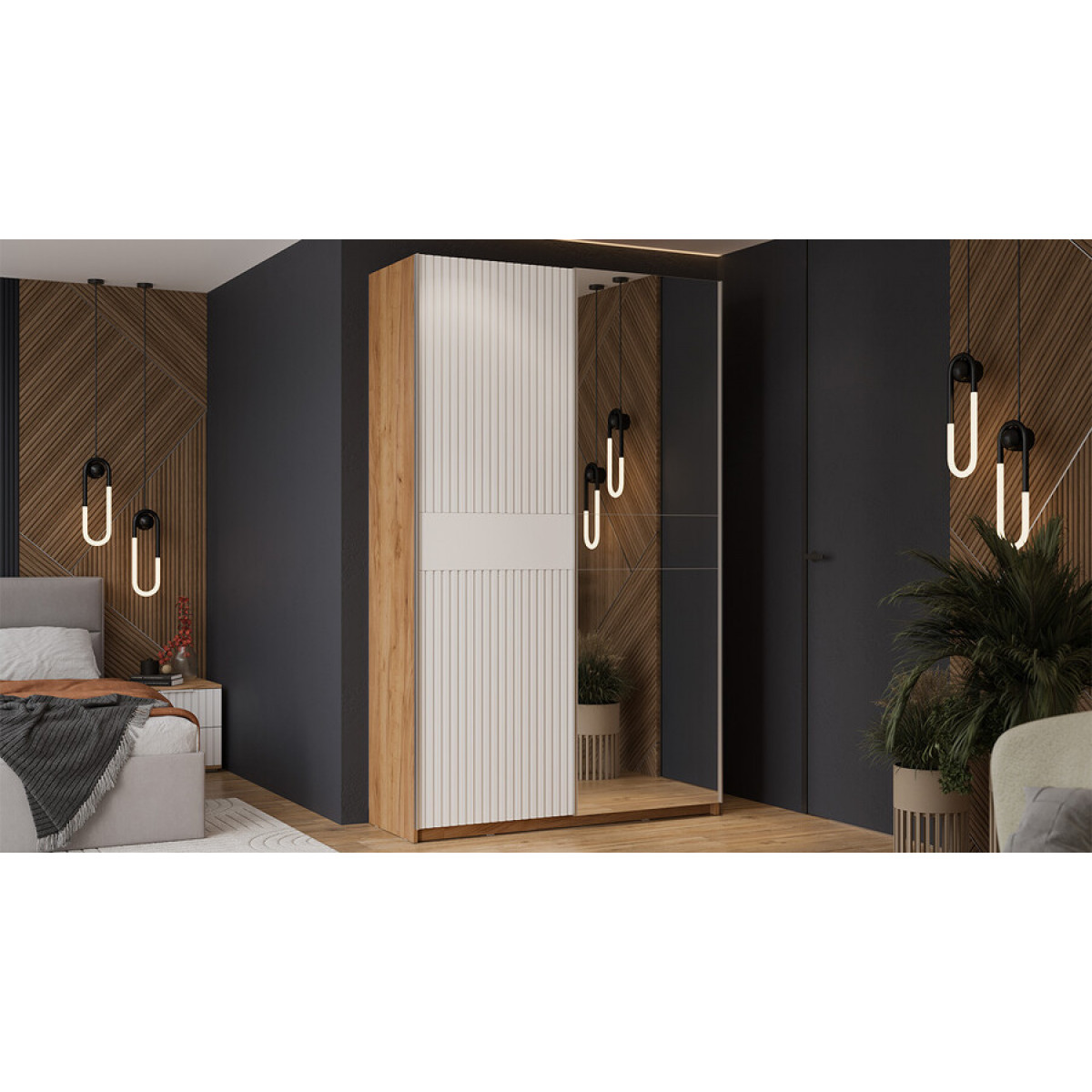 Шкаф-купе с 1 глухой и 1 зеркальной дверями «Оскар Хилтон» Тип 2 Ручка серебро, Дуб Крафт золотой, Белый матовый