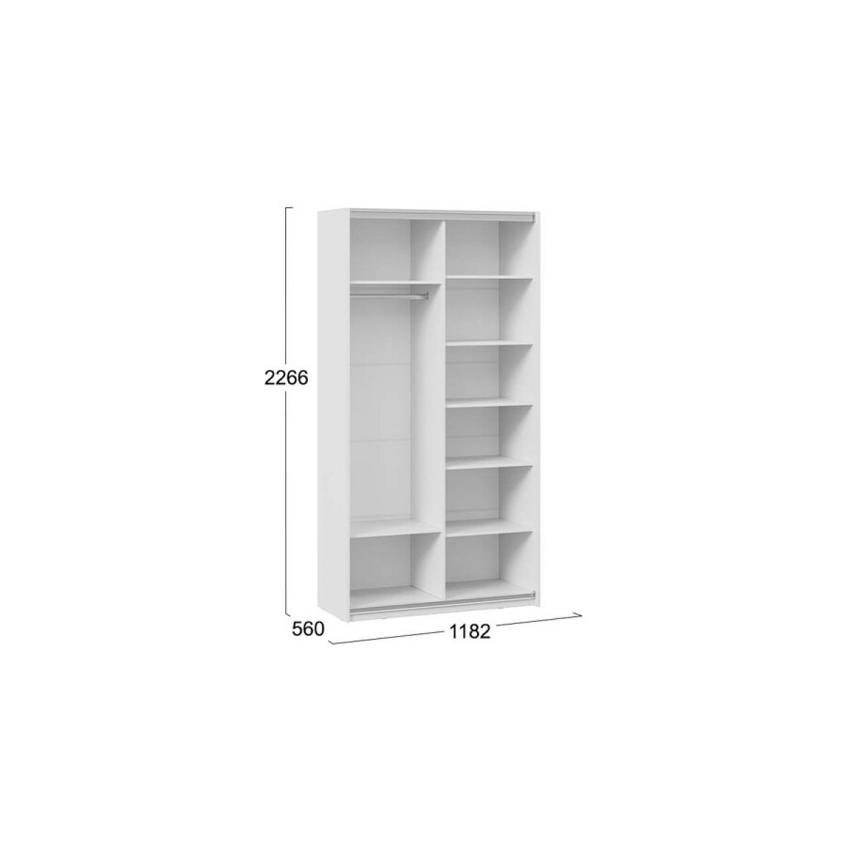 Шкаф-купе с 1 глухой и 1 зеркальной дверями «Оскар Тиффани» Тип 2 Ручка черная, Белый снег, Белый софт