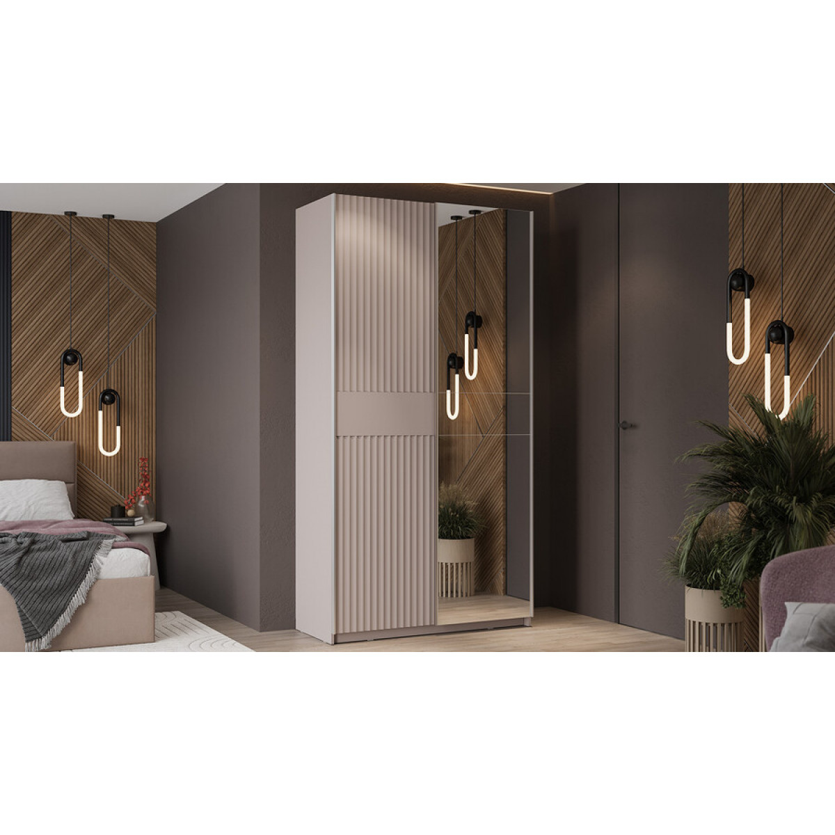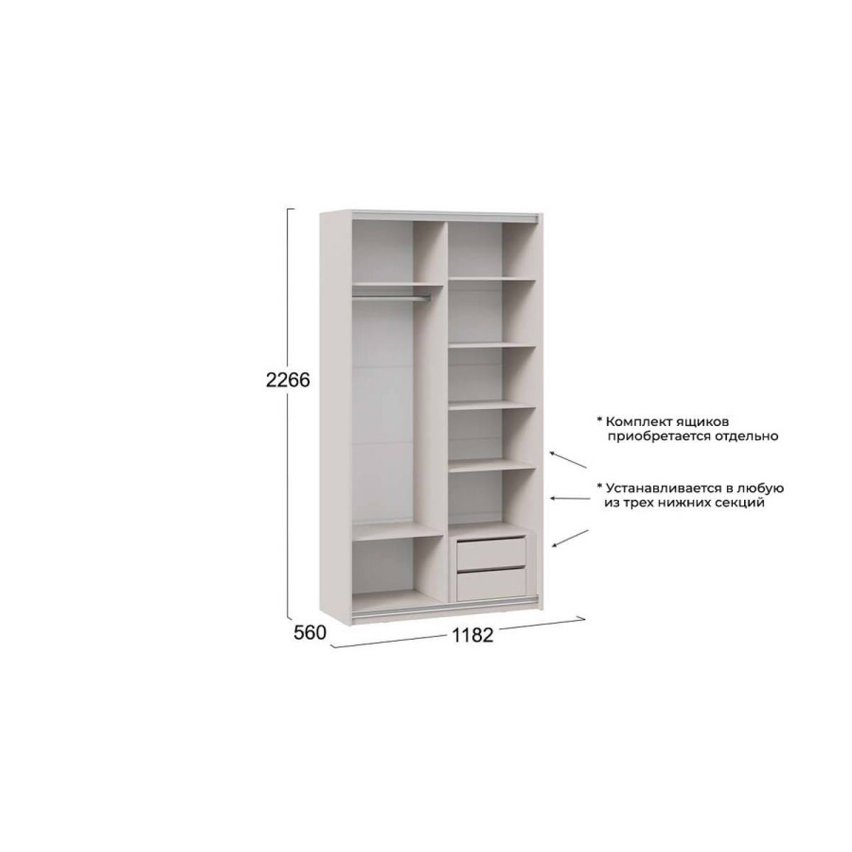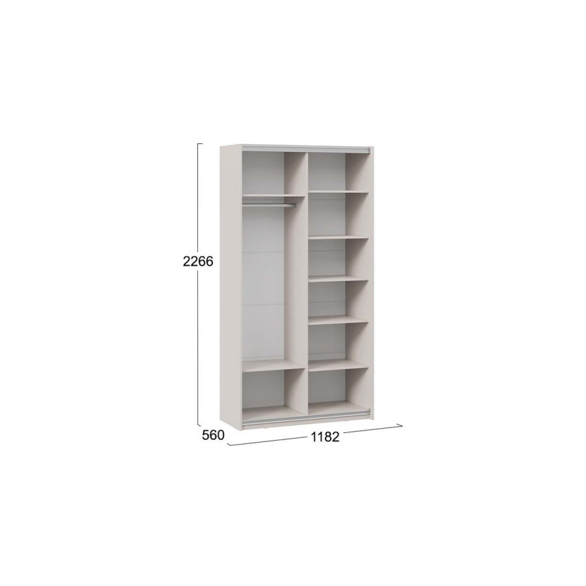 Шкаф-купе с 1 глухой и 1 зеркальной дверями «Оскар Тиффани» Тип 2 Ручка серебро, Кашемир, Кашемир матовый