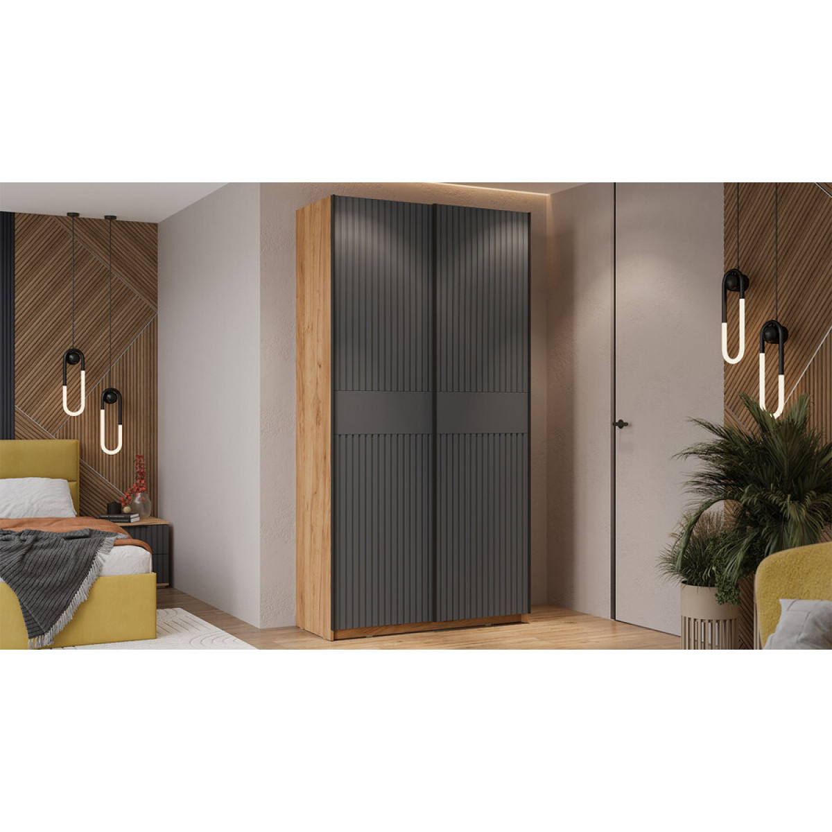 Шкаф-купе с 2 глухими дверями «Оскар Хилтон» Тип 2 Ручка черная, Дуб Крафт золотой, Графит матовый