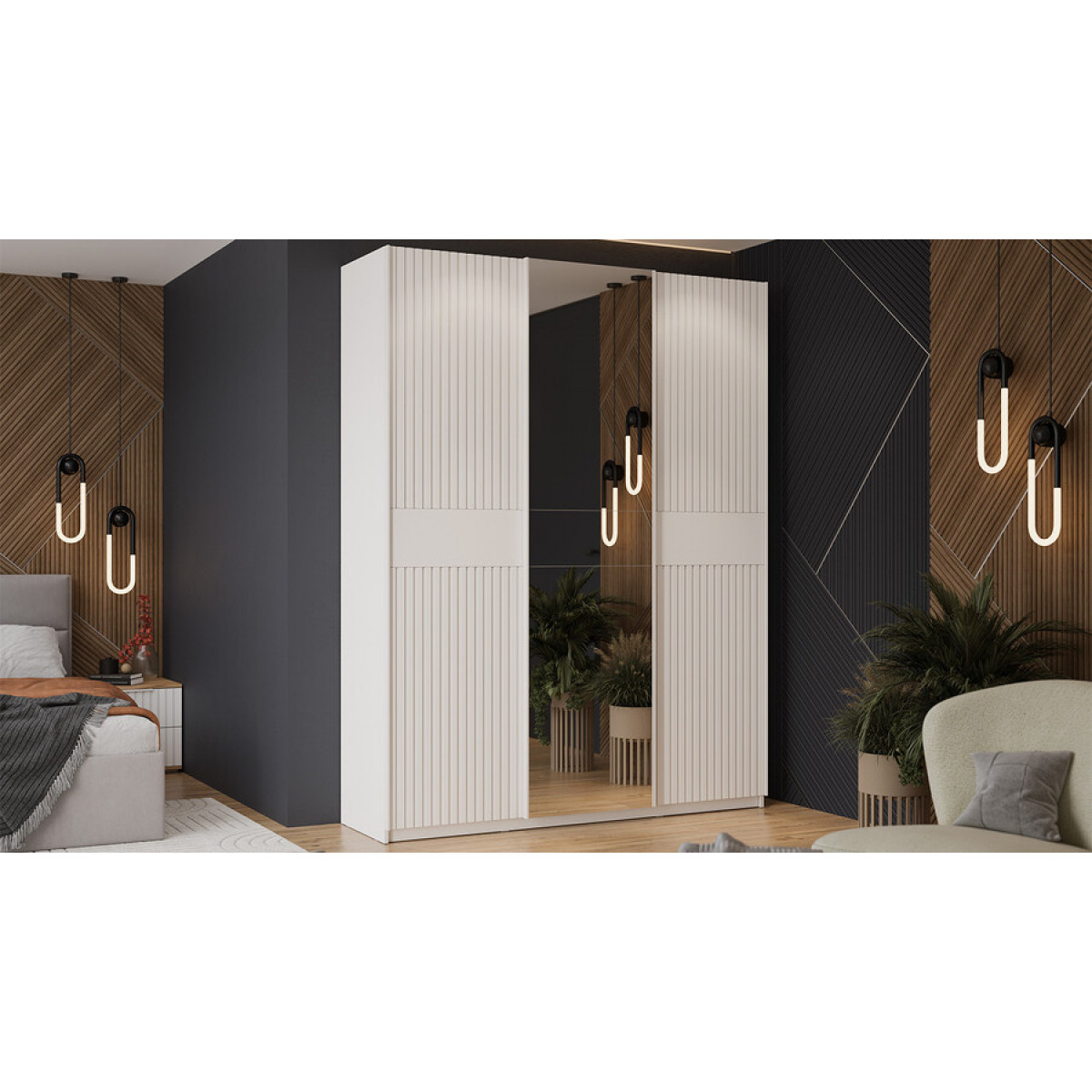 Шкаф-купе с 2 глухими и 1 зеркальной дверями «Оскар Хилтон» Тип 2 Ручка белая, Белый снег, Белый матовый