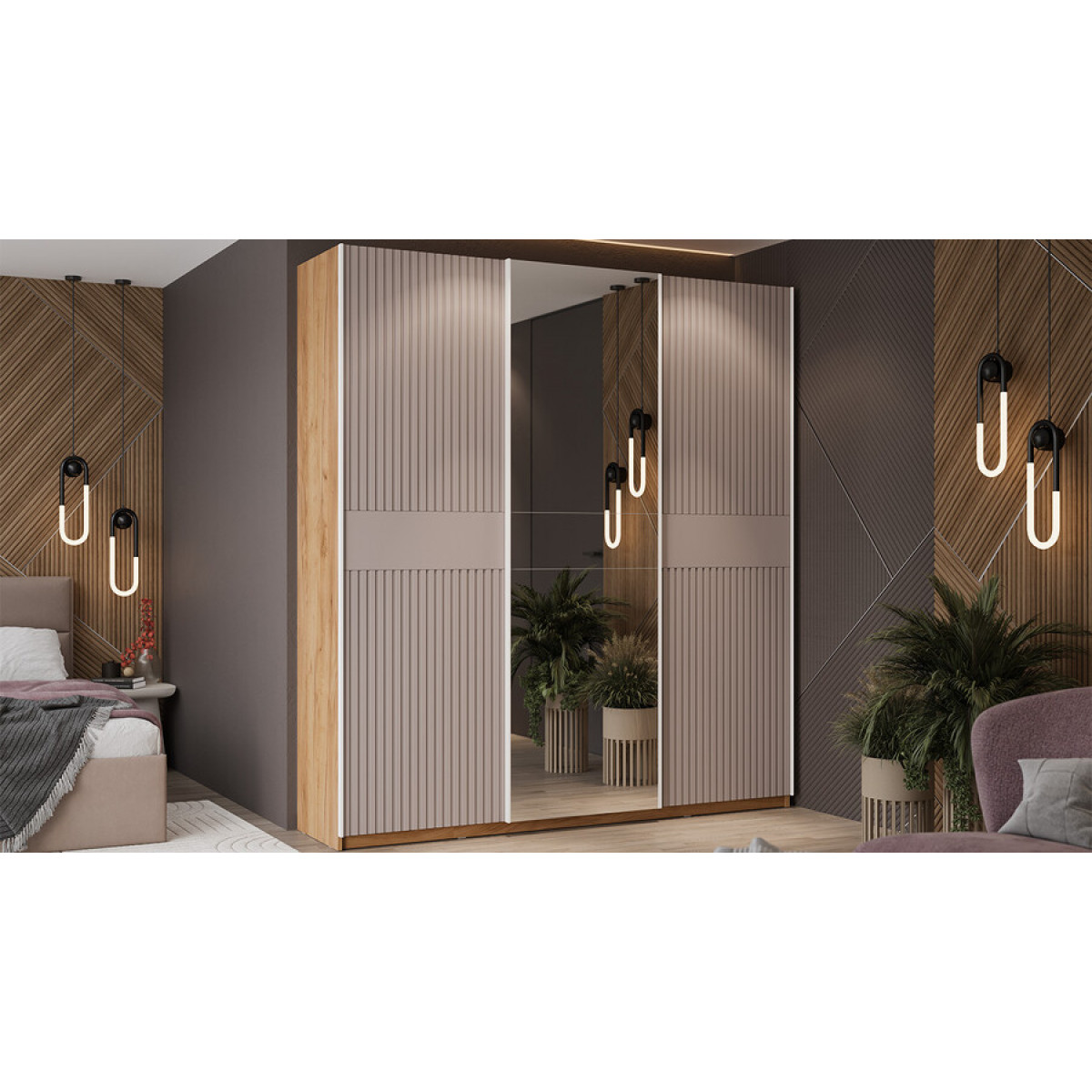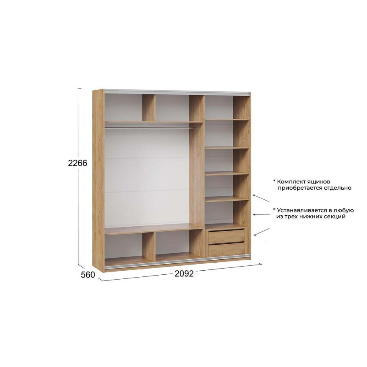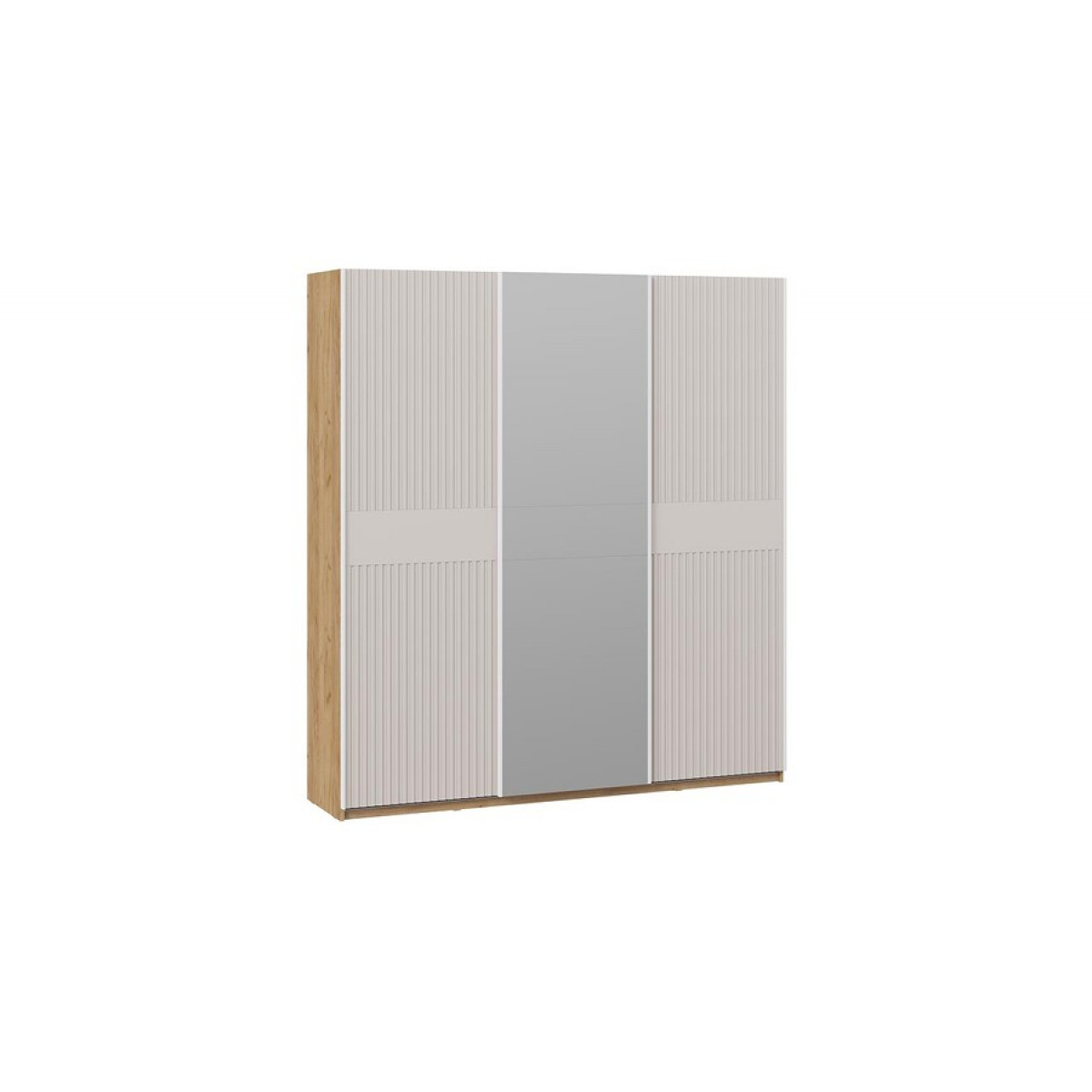Шкаф-купе с 2 глухими и 1 зеркальной дверями «Оскар Хилтон» Тип 2 Ручка белая, Дуб Крафт золотой, Кашемир сатин
