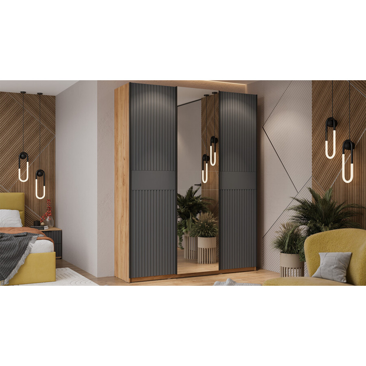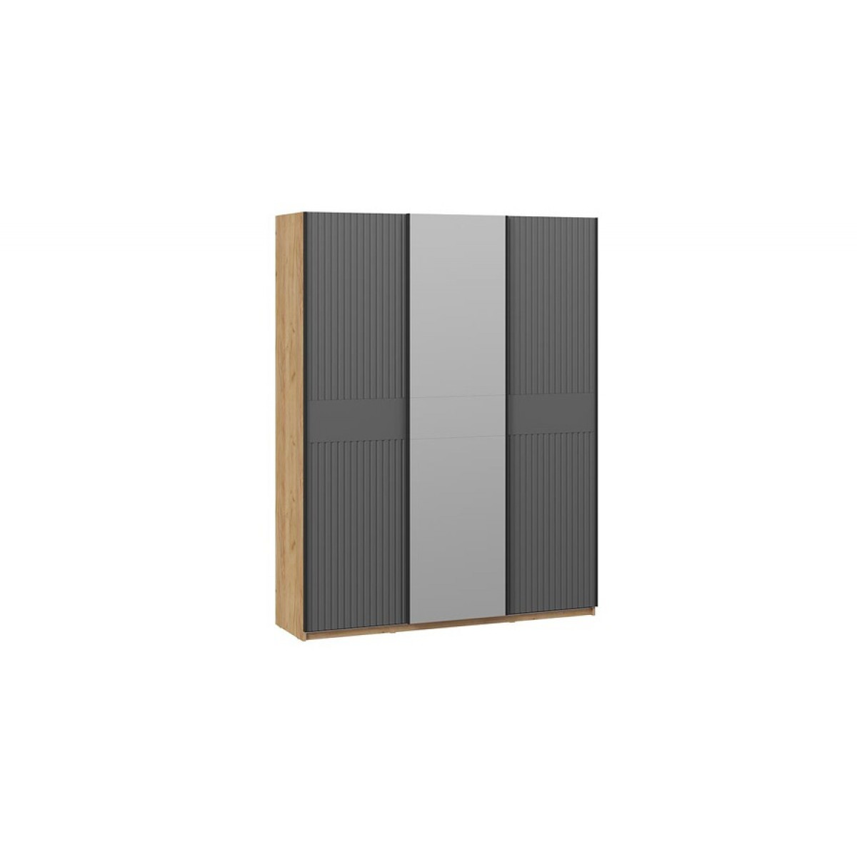 Шкаф-купе с 2 глухими и 1 зеркальной дверями «Оскар Хилтон» Тип 2 Ручка черная, Дуб Крафт золотой, Графит матовый