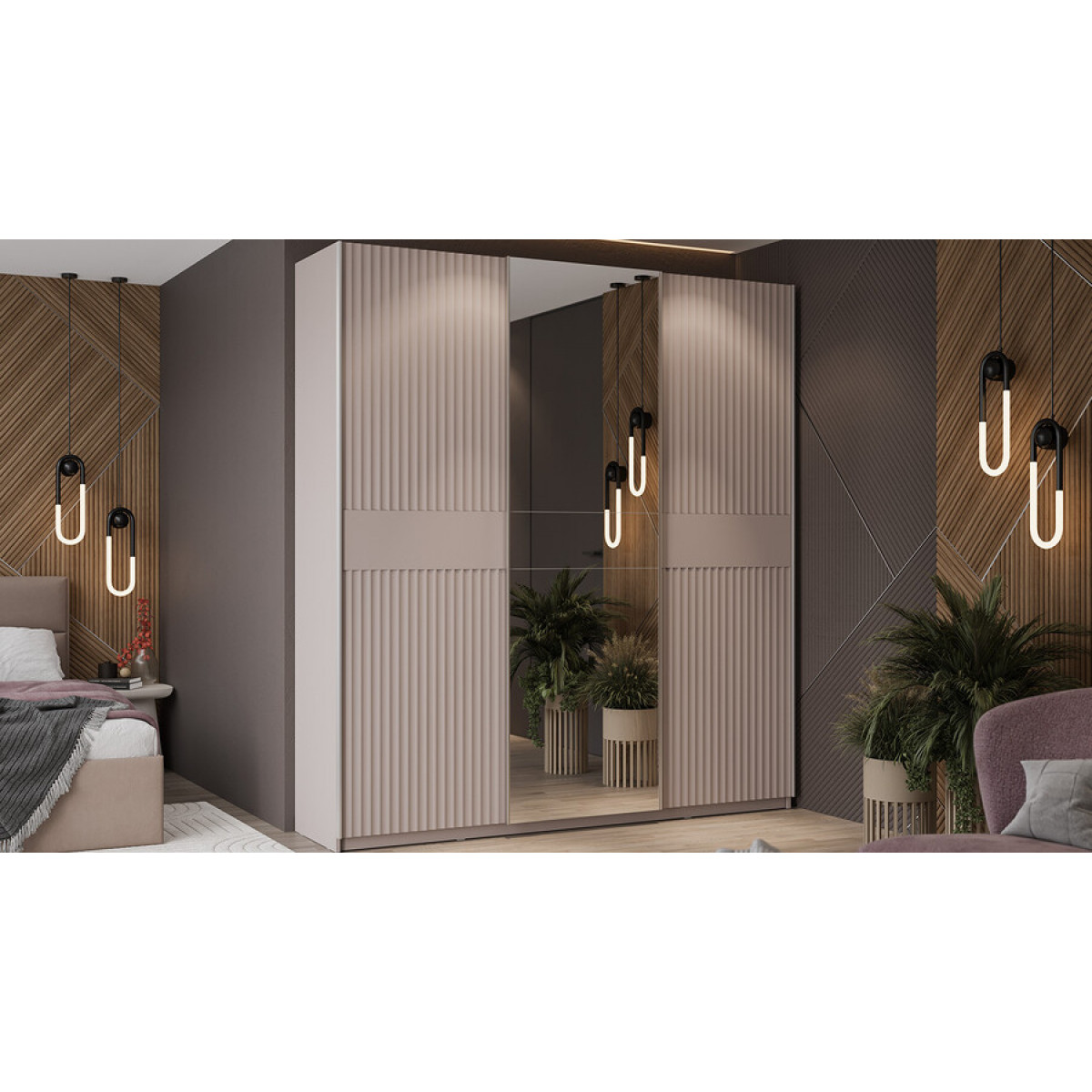 Шкаф-купе с 2 глухими и 1 зеркальной дверями «Оскар Тиффани» Тип 2 Ручка серебро, Кашемир, Кашемир матовый