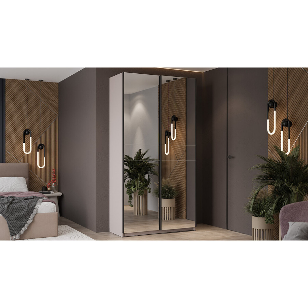 Шкаф-купе с 2 зеркальными дверями «Оскар» Ручка черная, Кашемир