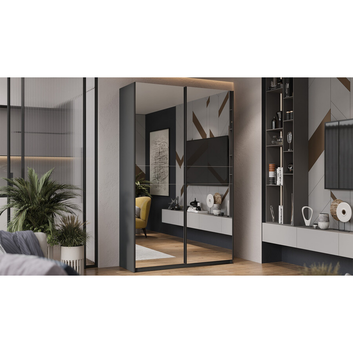 Шкаф-купе с 2 зеркальными дверями «Оскар» Тип 2 Ручка черная, Серый графит