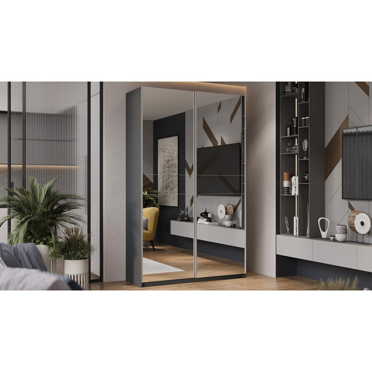 Шкаф-купе с 2 зеркальными дверями «Оскар» Тип 2 Ручка серебро, Серый графит