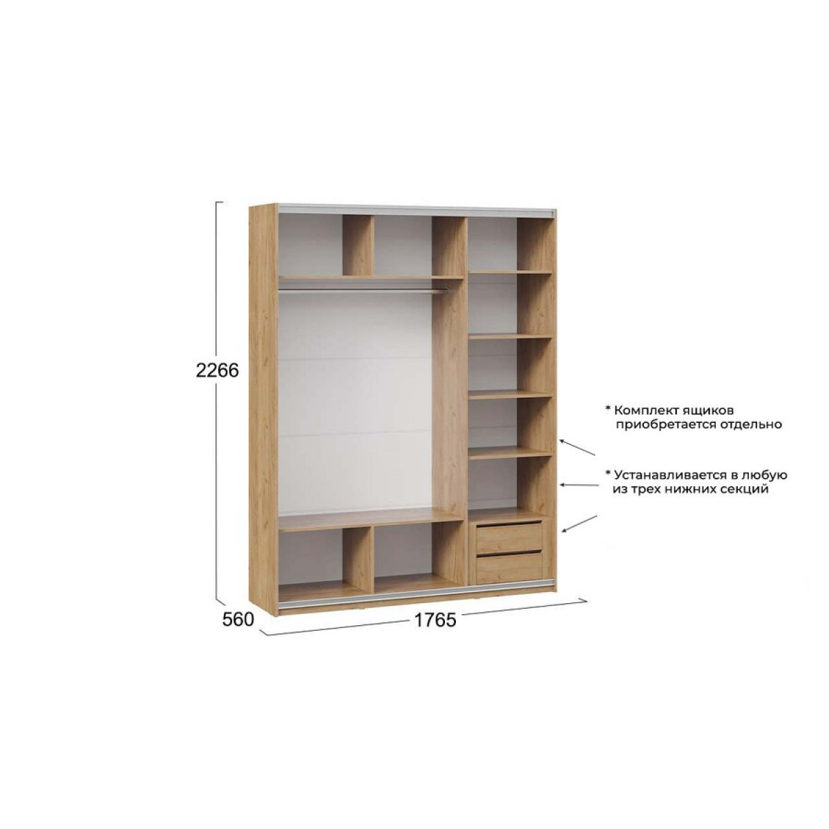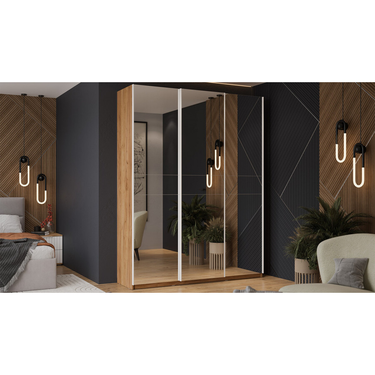 Шкаф-купе с 3 зеркальными дверями «Оскар» Тип 2 Ручка белая, Дуб Крафт золотой
