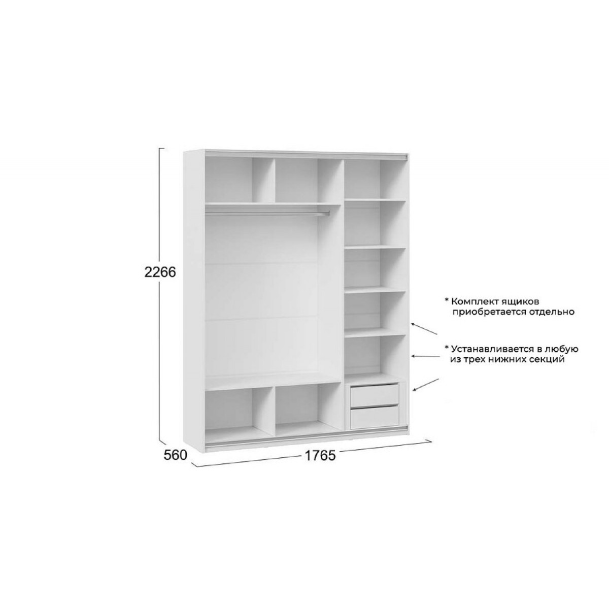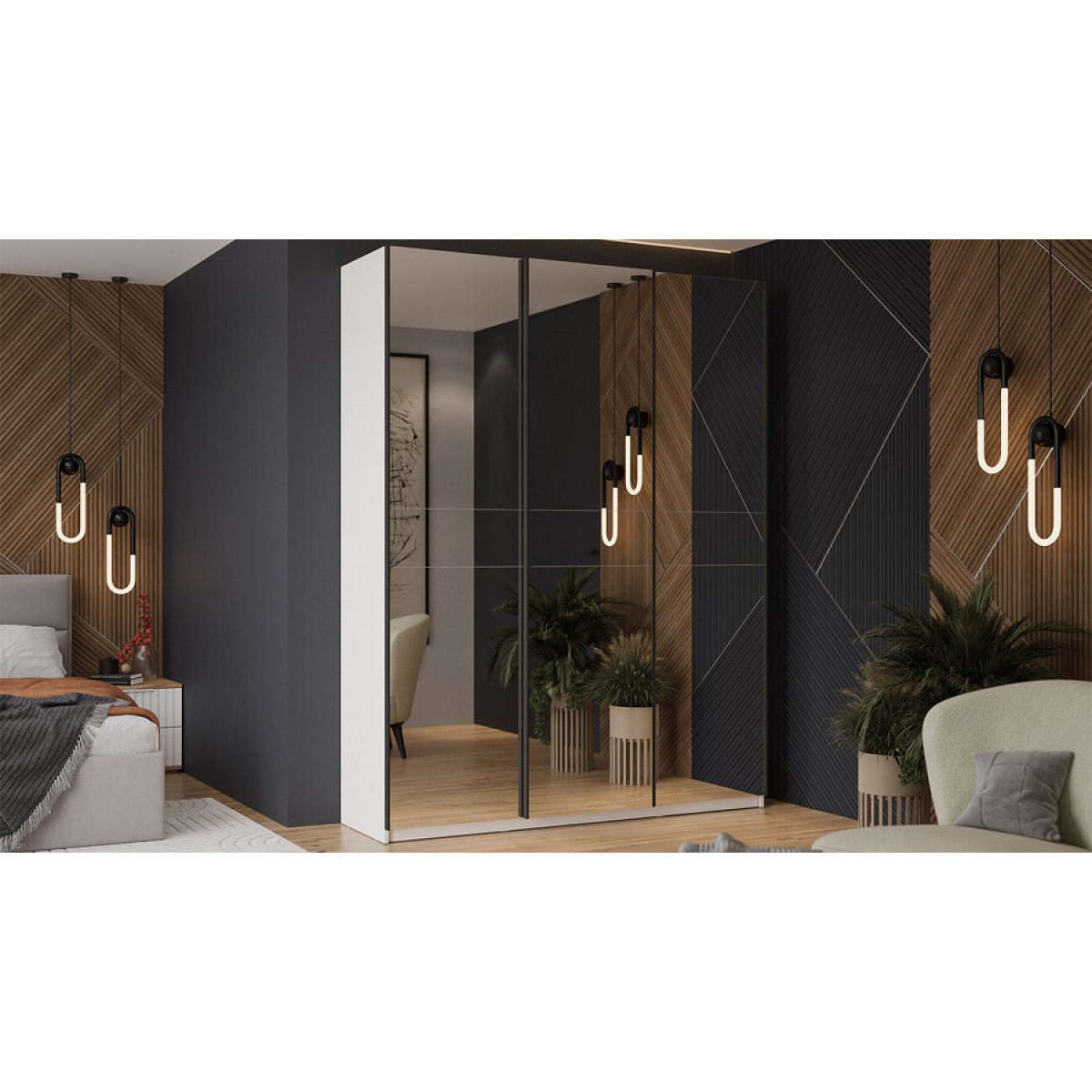 Шкаф-купе с 3 зеркальными дверями «Оскар» Тип 2 Ручка черная, Белый снег