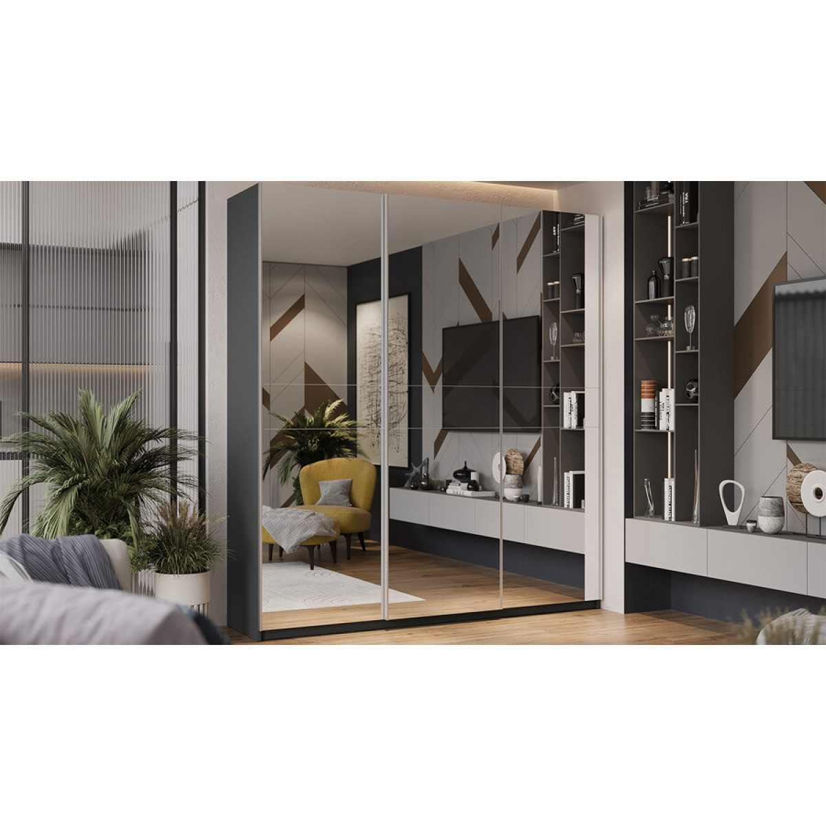 Шкаф-купе с 3 зеркальными дверями «Оскар» Тип 2 Ручка серебро, Серый графит