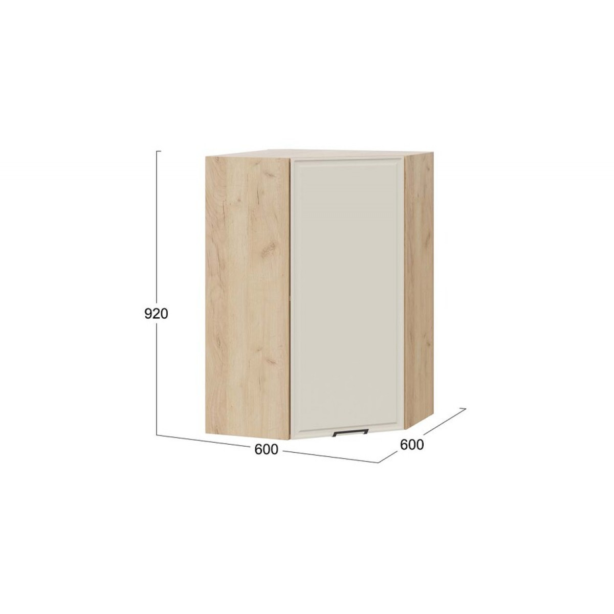 Шкаф навесной угловой «Белладжио» - 1ВВ6У Дуб Крафт золотой, Софт панакота