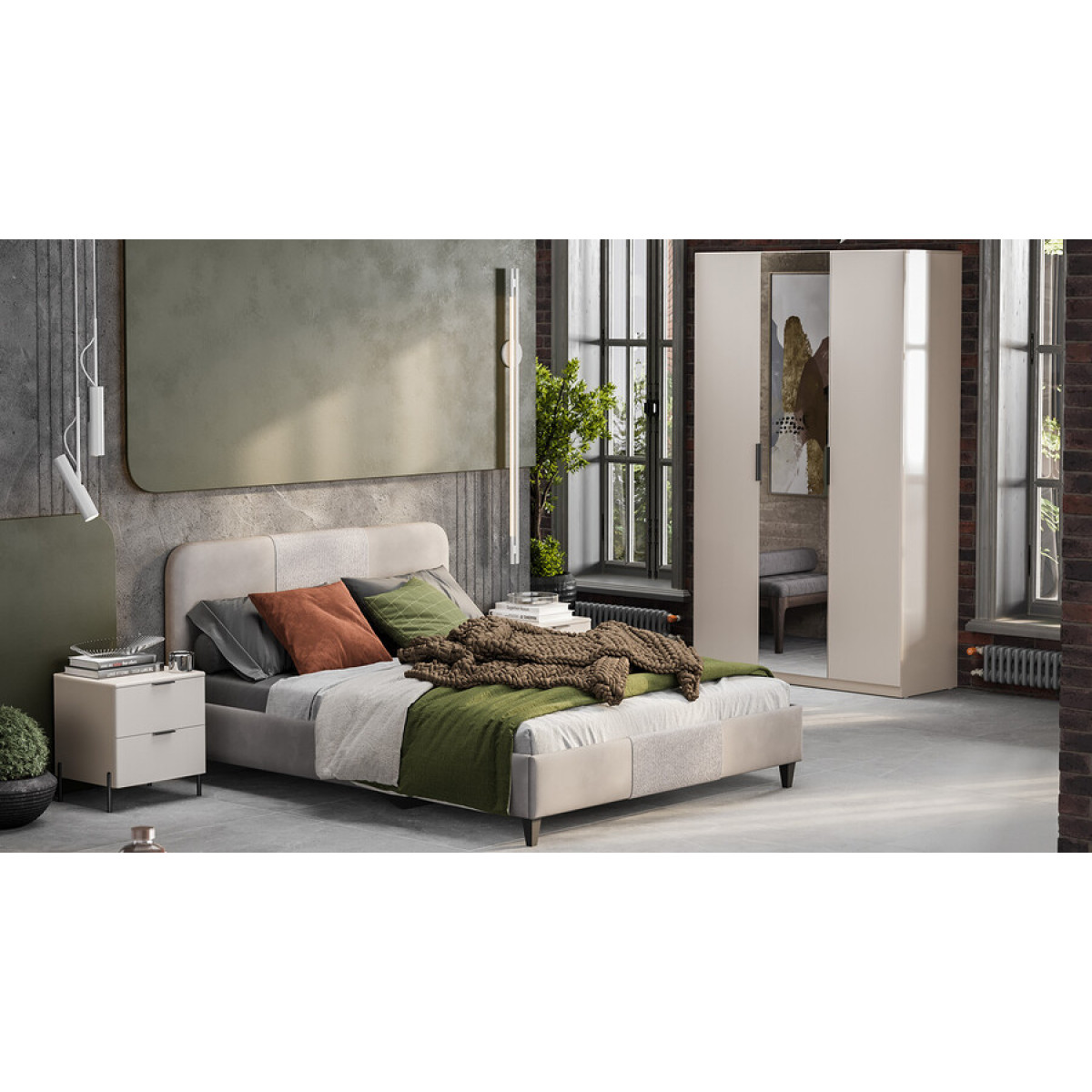 Спальный гарнитур «Тесса» Тип 2 №4 - ГН-004 Кашемир, Кашемир глянец