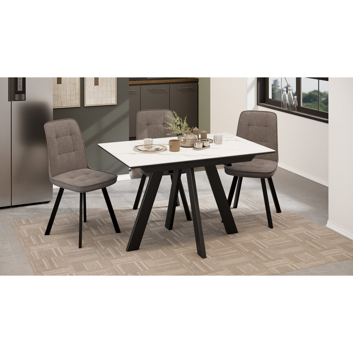 Стол обеденный «Бронкс» Тип 1 Черный муар, Керамика матовая белый мрамор