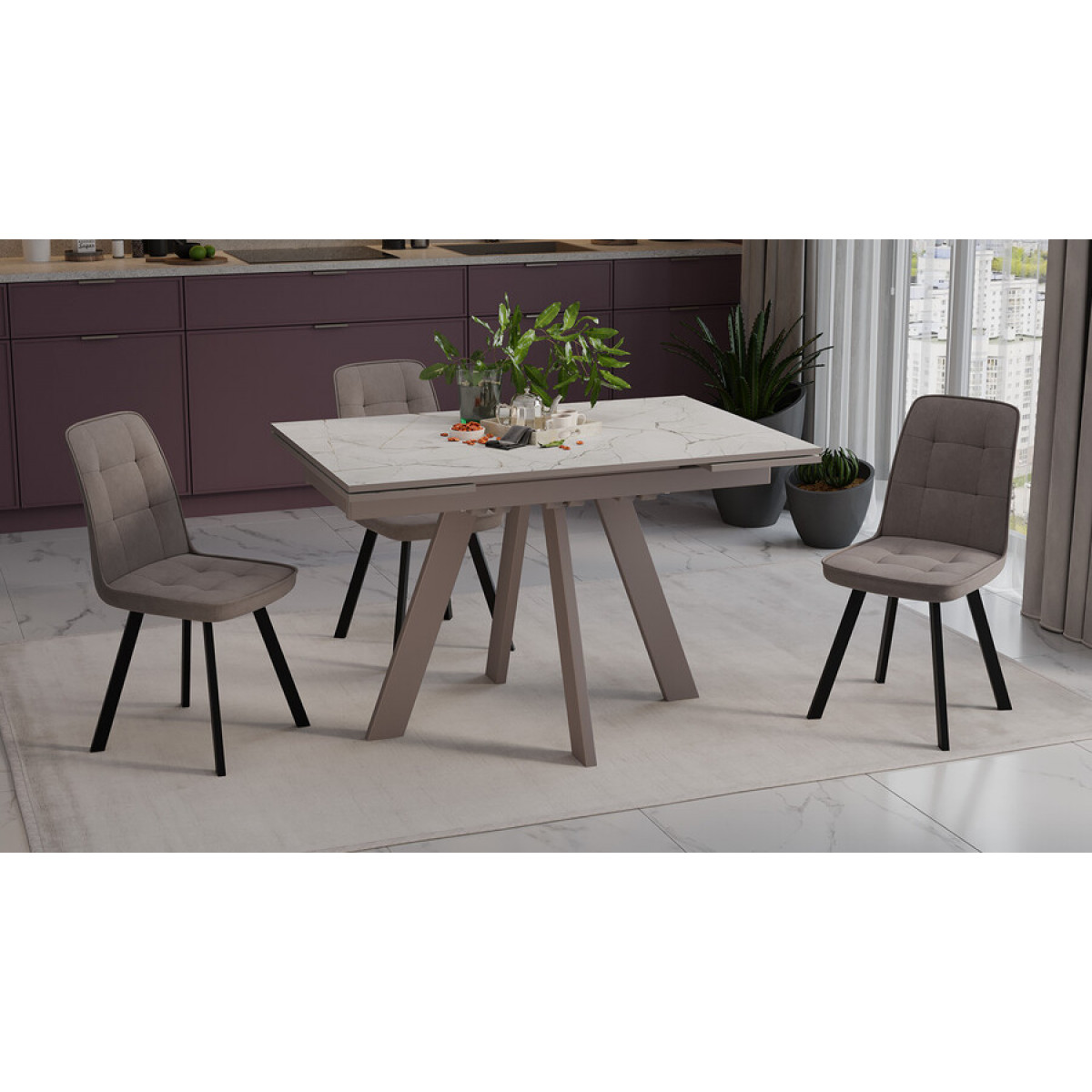Стол обеденный «Джаггер» Тип 3 Капучино матовый, Бежевый мрамор